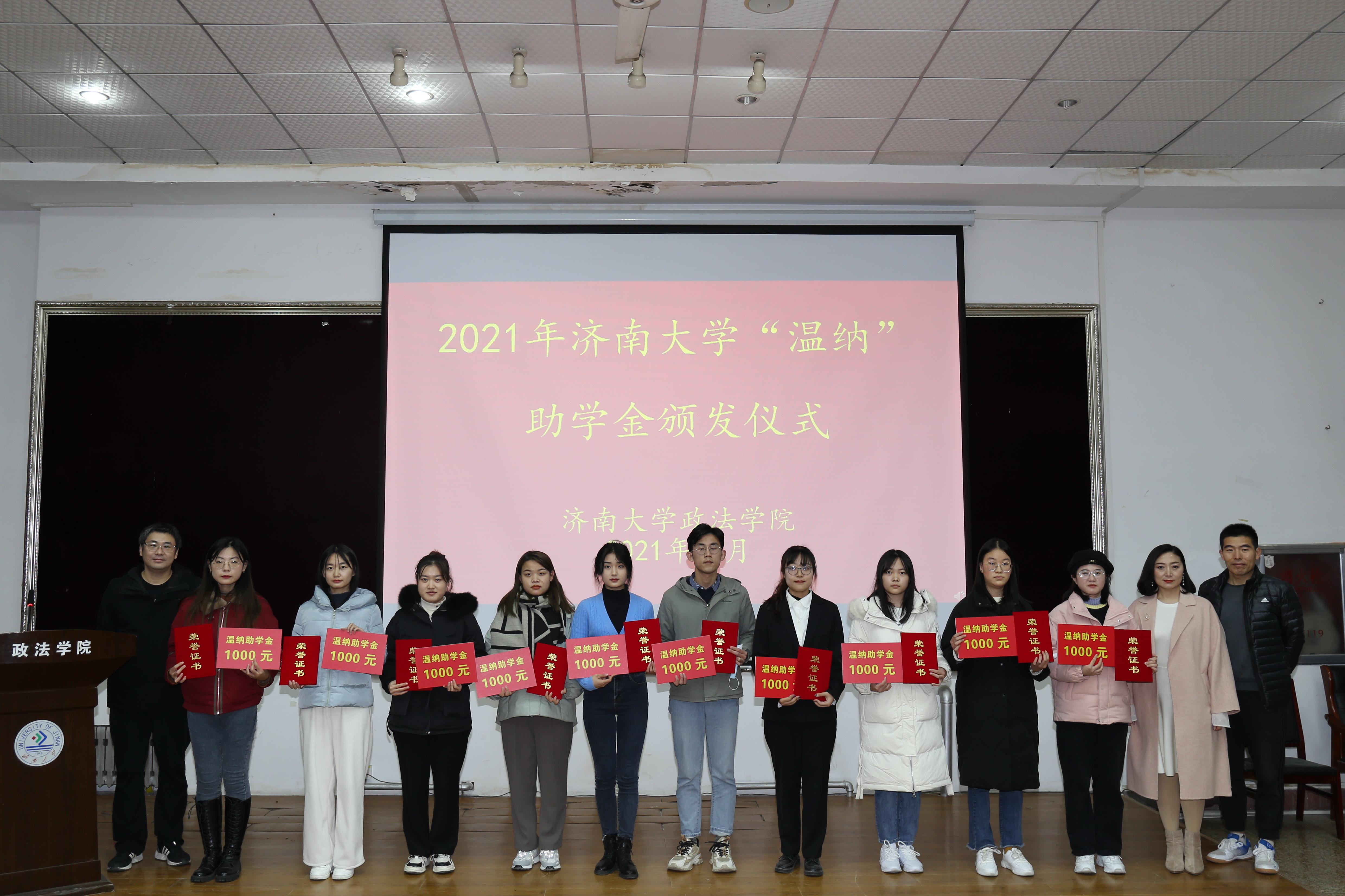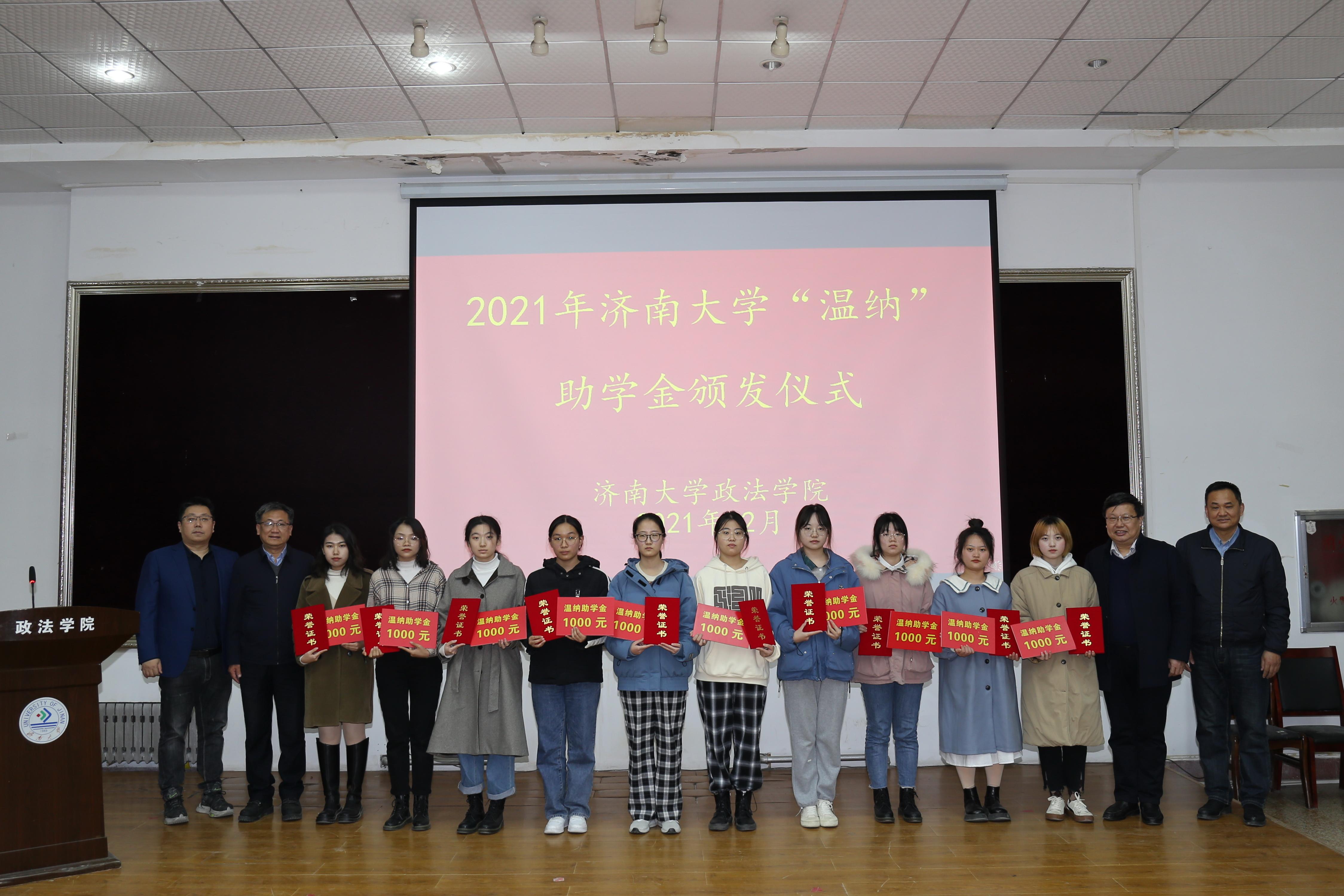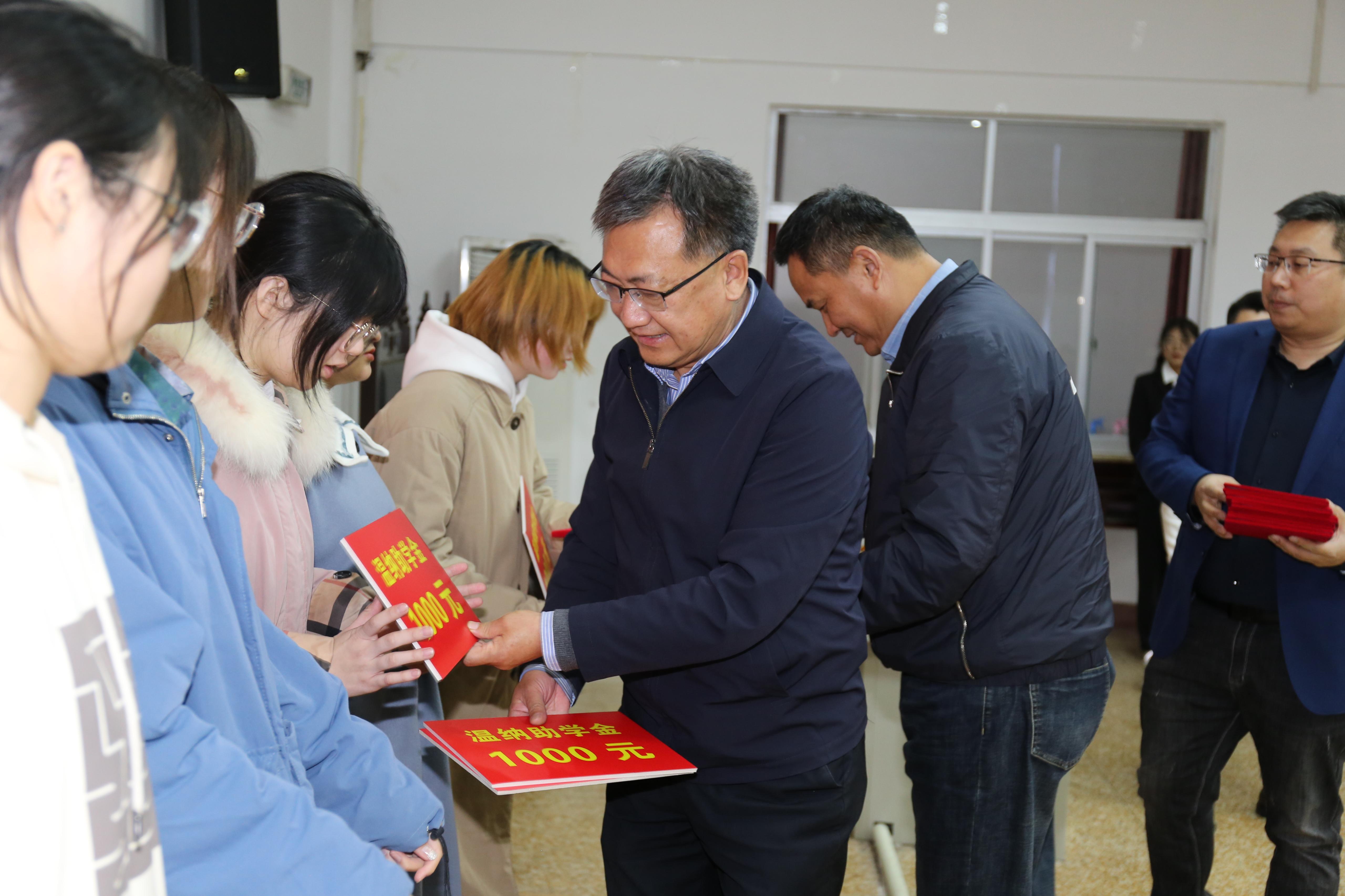 和校友企业表示感激,山东温纳律师事务所主任武磊向获得助学金的同学表示祝贺,与会嘉宾为首批获得助学金的三十位学生颁发了获奖证明。