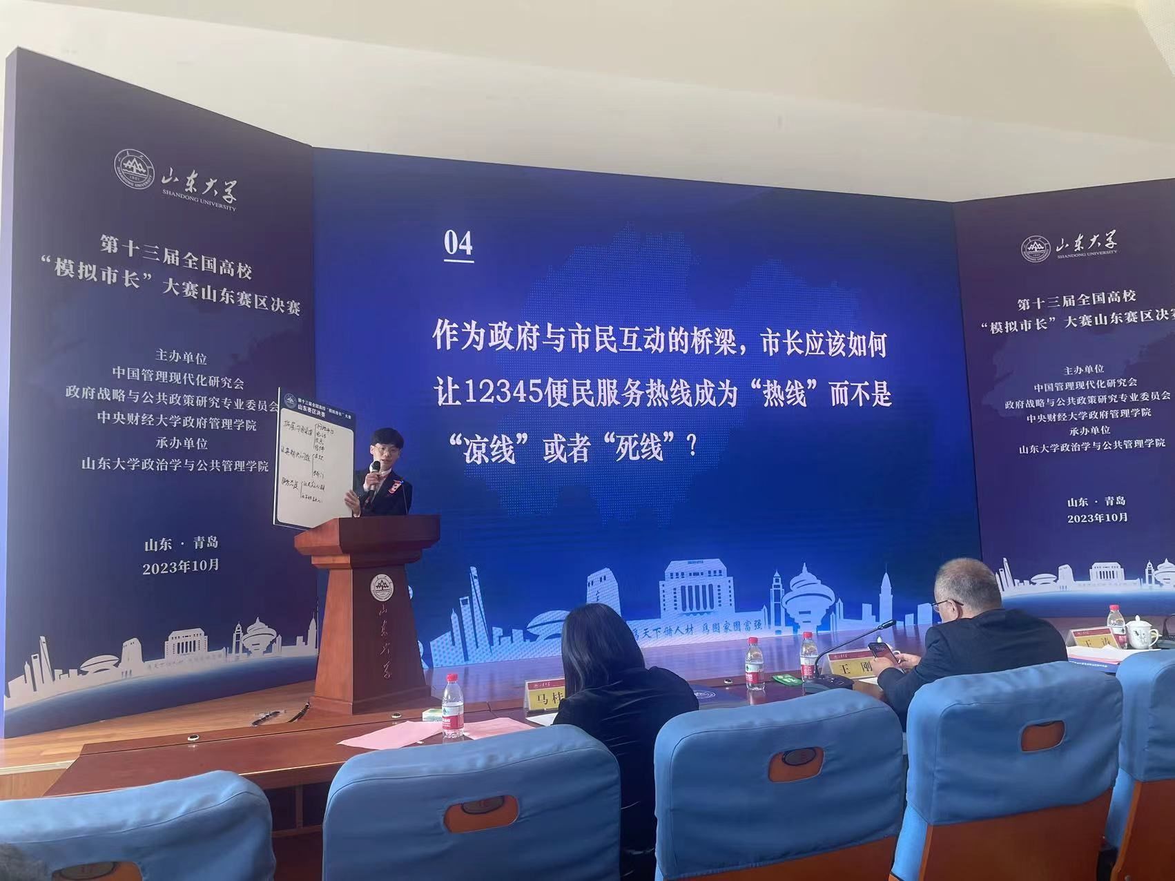 10月28日,第十三届全国高校“模拟市长”大赛山东赛区决赛在山东大学(青岛校区)圆满收官。大赛由中国管理现代化研究会政府战略与公共政策研究专业委员会和中央财经大学政府管理六合论坛