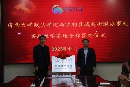 李涛副书记带队,行政管理系宁有才、韩慧、社会学系高朋、人力资源与社会保障系孙红晔等参加此次活动。临朐县干部教育中心主任王成建、城关街道办事处主任陈敬等领导出席签约仪式。