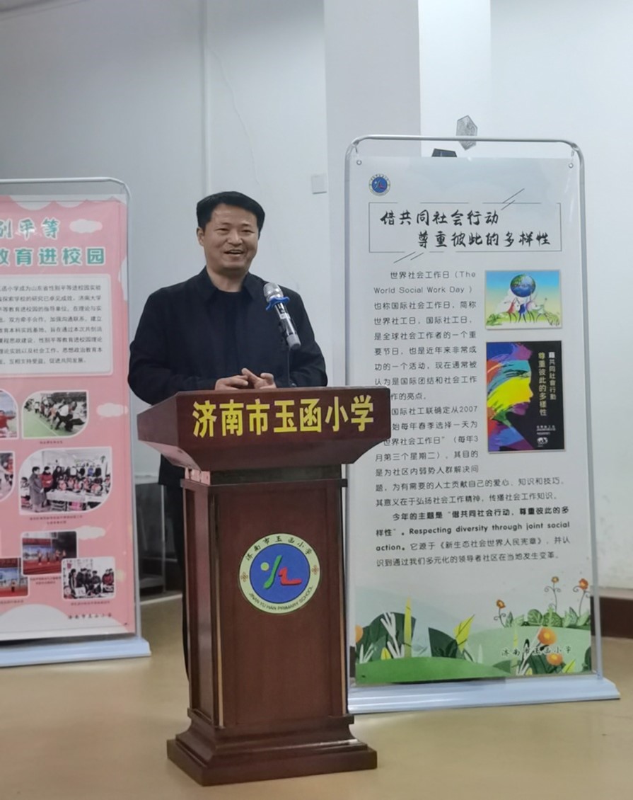 本科实践教学基地建设协议、就业实习基地建设协议、社会学系党支部与济南市玉函小学党支部结对共建协议,并为基地单位授牌。