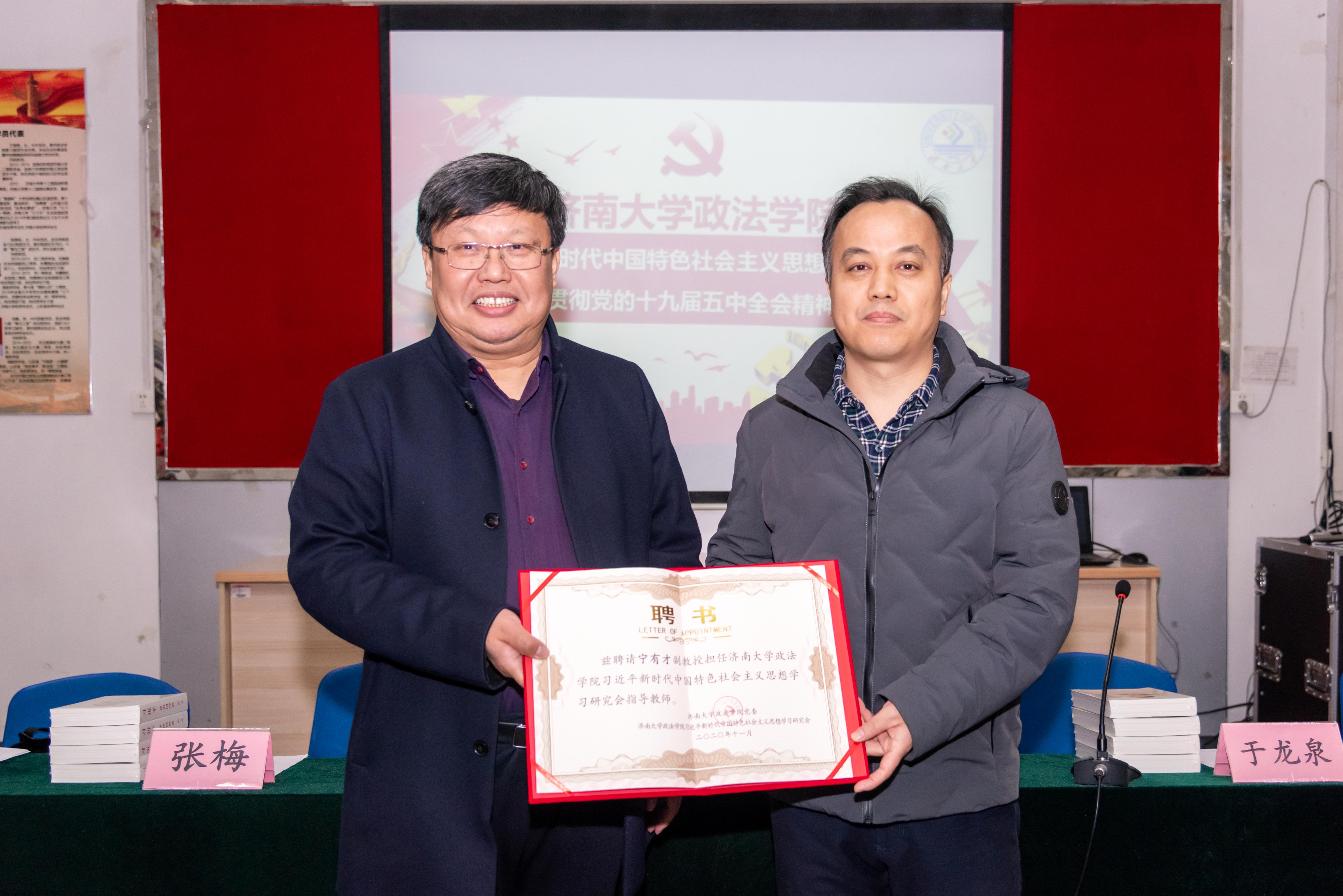 开展思想政治教育的重要载体,通过配齐配强指导教师,为学习研究会今后发展提供强大智力支持和保障。随后,他从为什么学、学什么、怎么学三个方面,希望全体学员站在历史维度、实践维度和个人成长维度充分认识加强理论学习的重要性,坚持学原文、读原著、悟原理,把学习宣传贯彻党的十九届五中全会精神作为当前和今后一个时期的重要政治任务,做到理论学习与实践学习、专业学习相结合,推动学习贯彻习近平新时代中国特色社会主义思想往深里走、往心里走、往实里走,做到真学、真懂、真信、真用,争做担当民族复兴大任的时代新人。