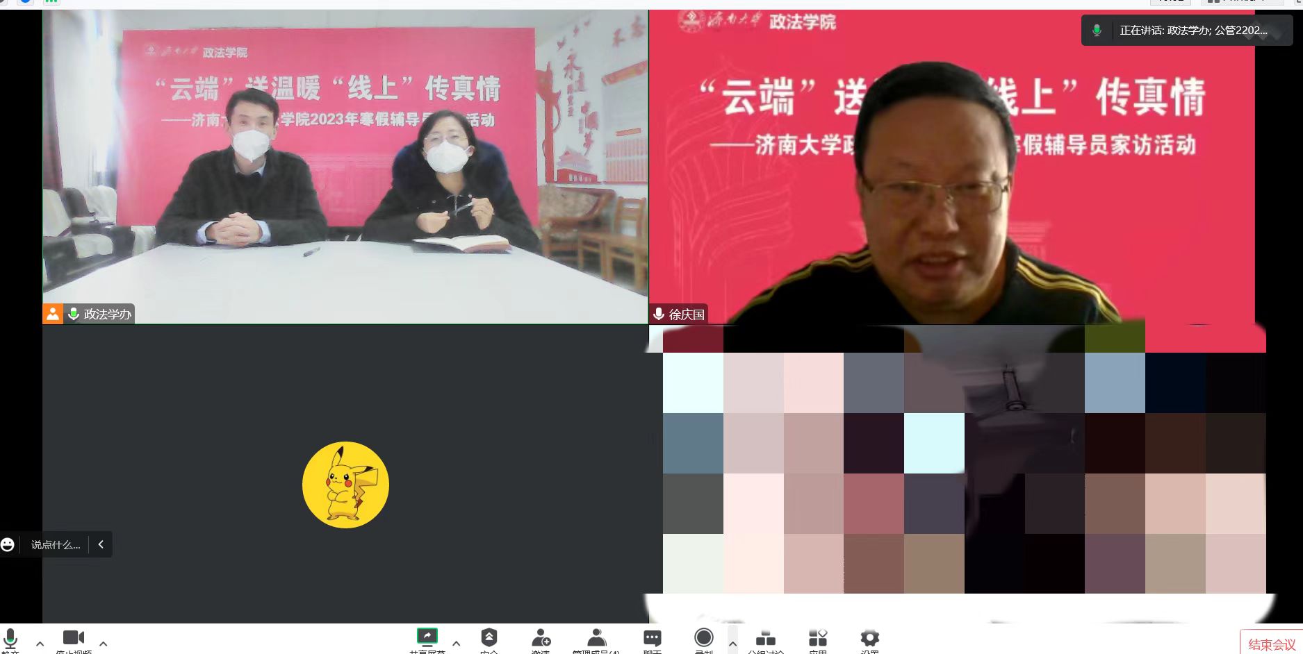 党委书记徐庆国,院长高功敬,副书记、副院长李涛,院长助理李秀凤及辅导员老师们采用线上形式对部分家庭经济困难同学进行了家访。