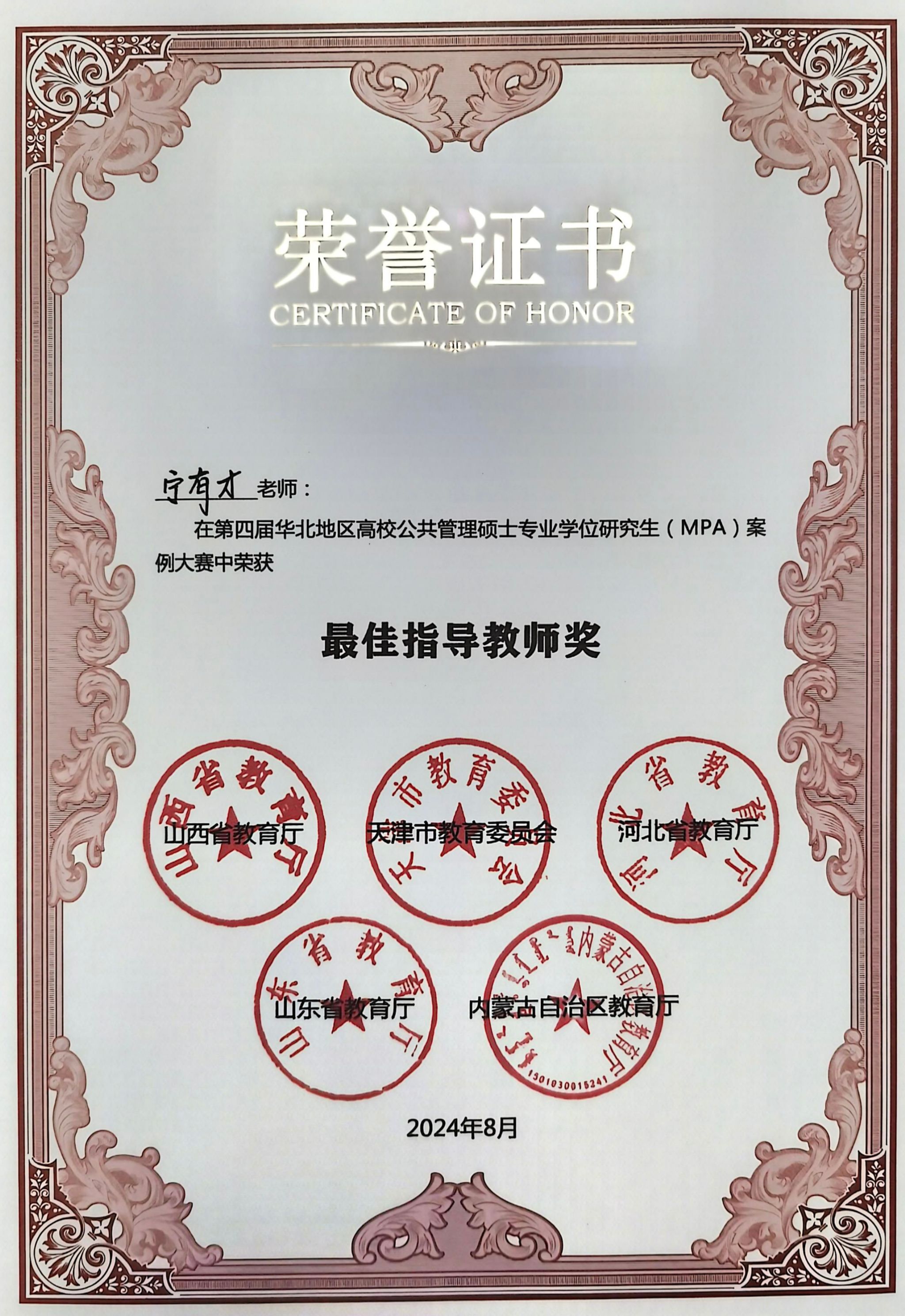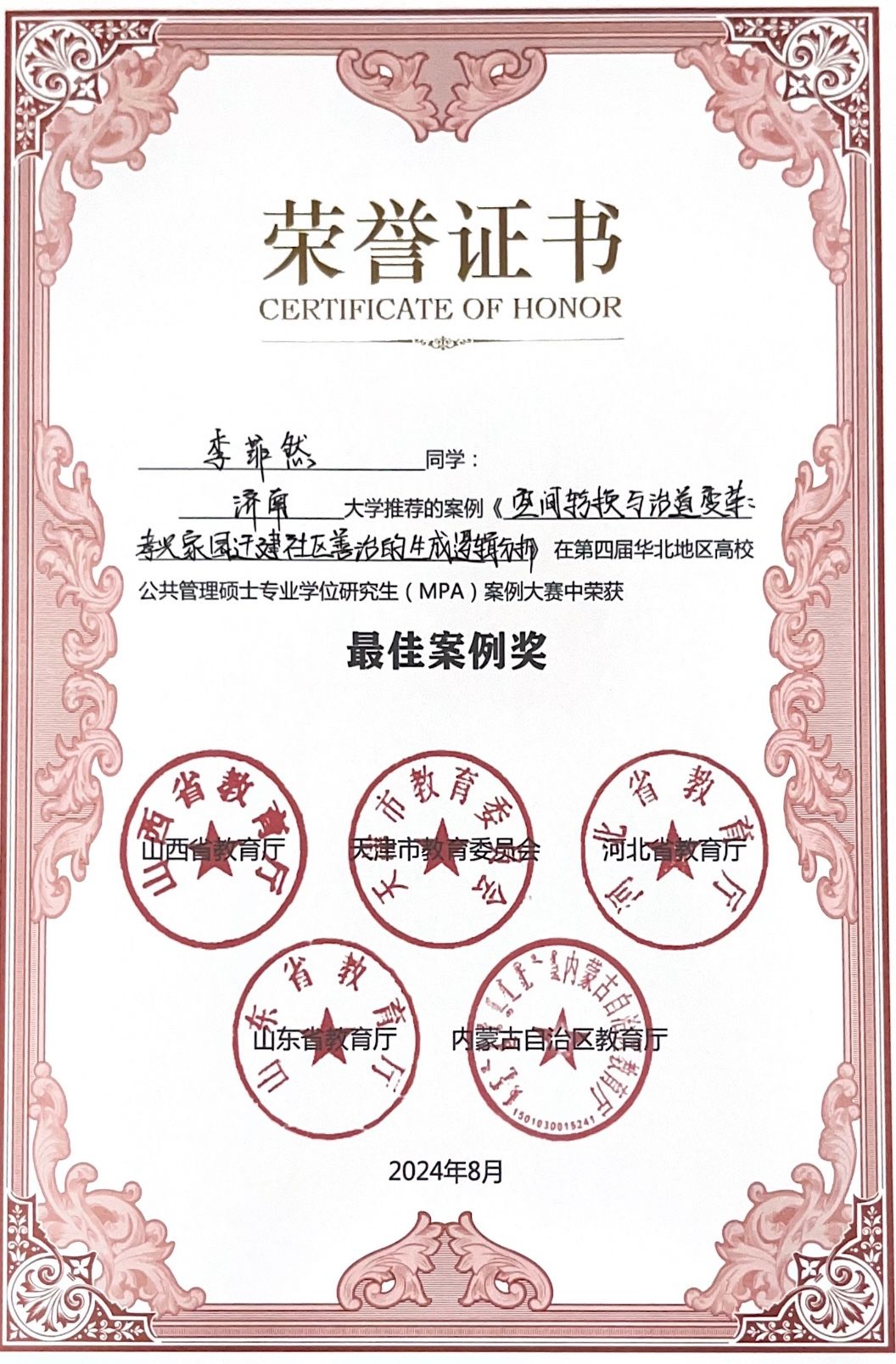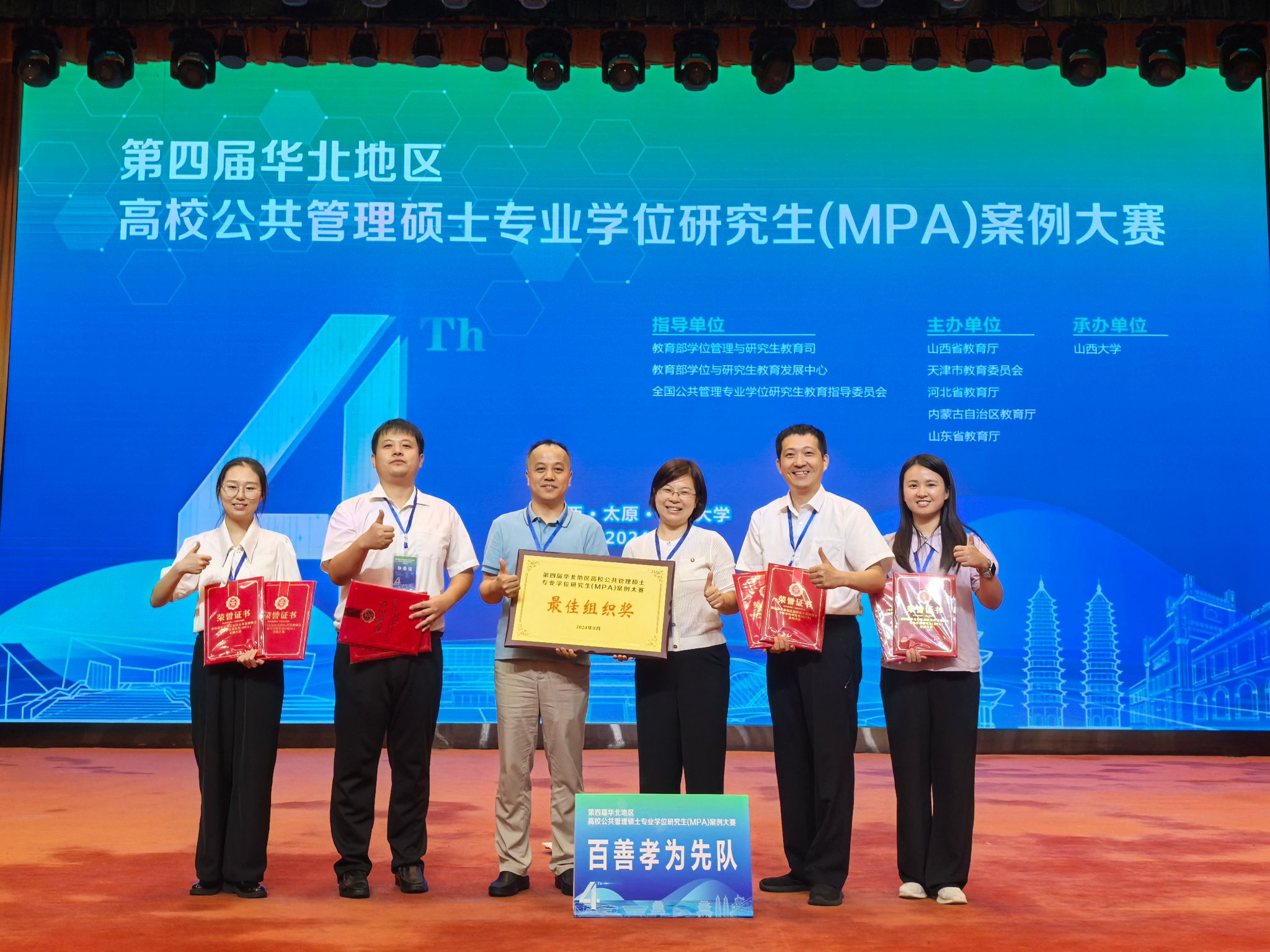 2024年8月24日,由教育部学位管理与研究生教育司、教育部学位与研究生教育发展中心、全国公共管理专业学位研究生教育指导委员会指导,山西省教育厅、天津市教育委员会、河北省教育厅、内蒙古自治区教育厅、山东省教育厅主办,山西大学承办的第四届华北地区高校公共管理硕士专业学位研究生(MPA)案例大赛在山西省太原市举行。