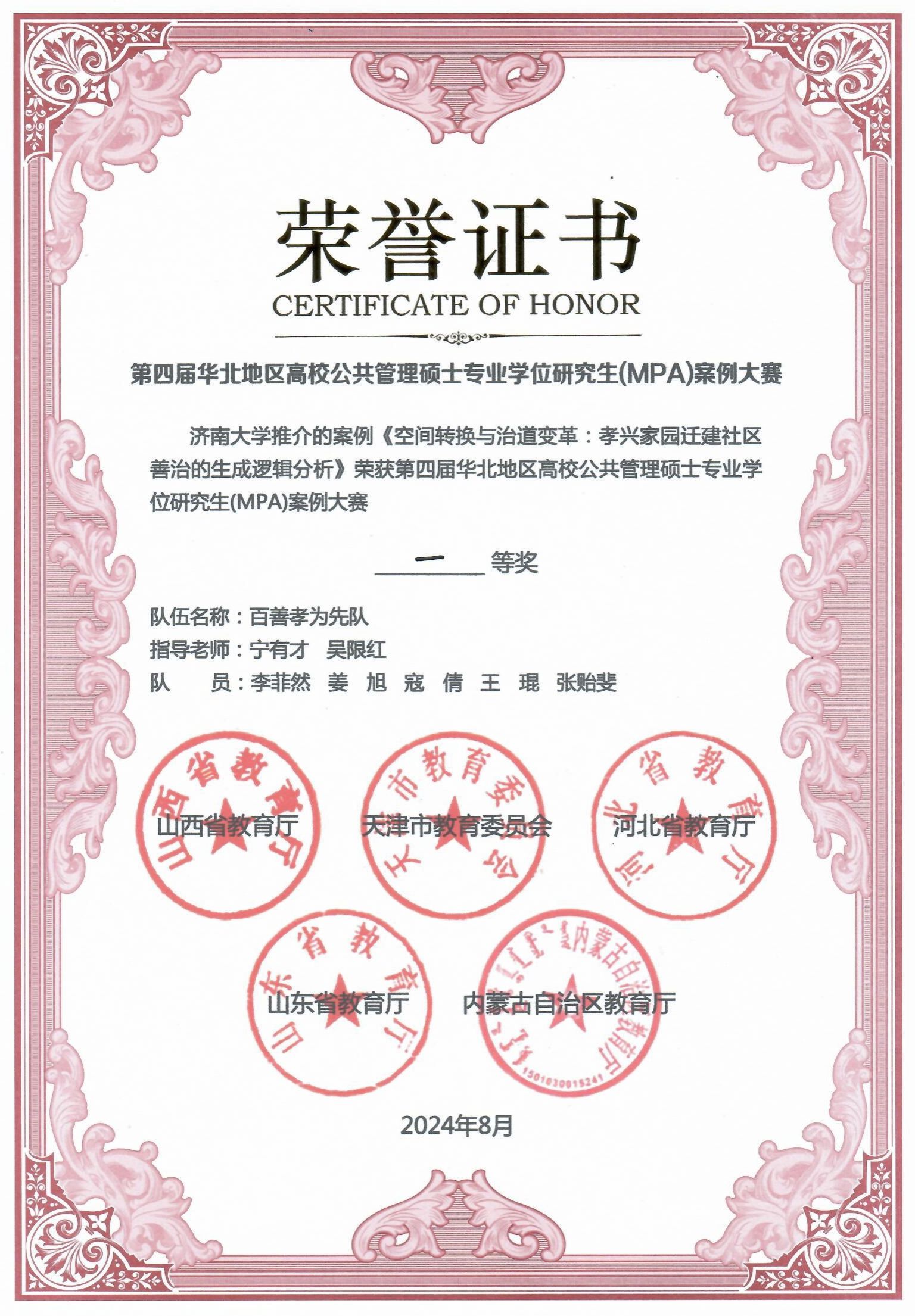 教师宁有才、吴限红指导,公共管理学2023级研究生李菲然(队长)、公共管理(MPA)2022级研究生姜旭、王琨、寇倩、张贻斐组成的“百善孝为先”队代表六合论坛
