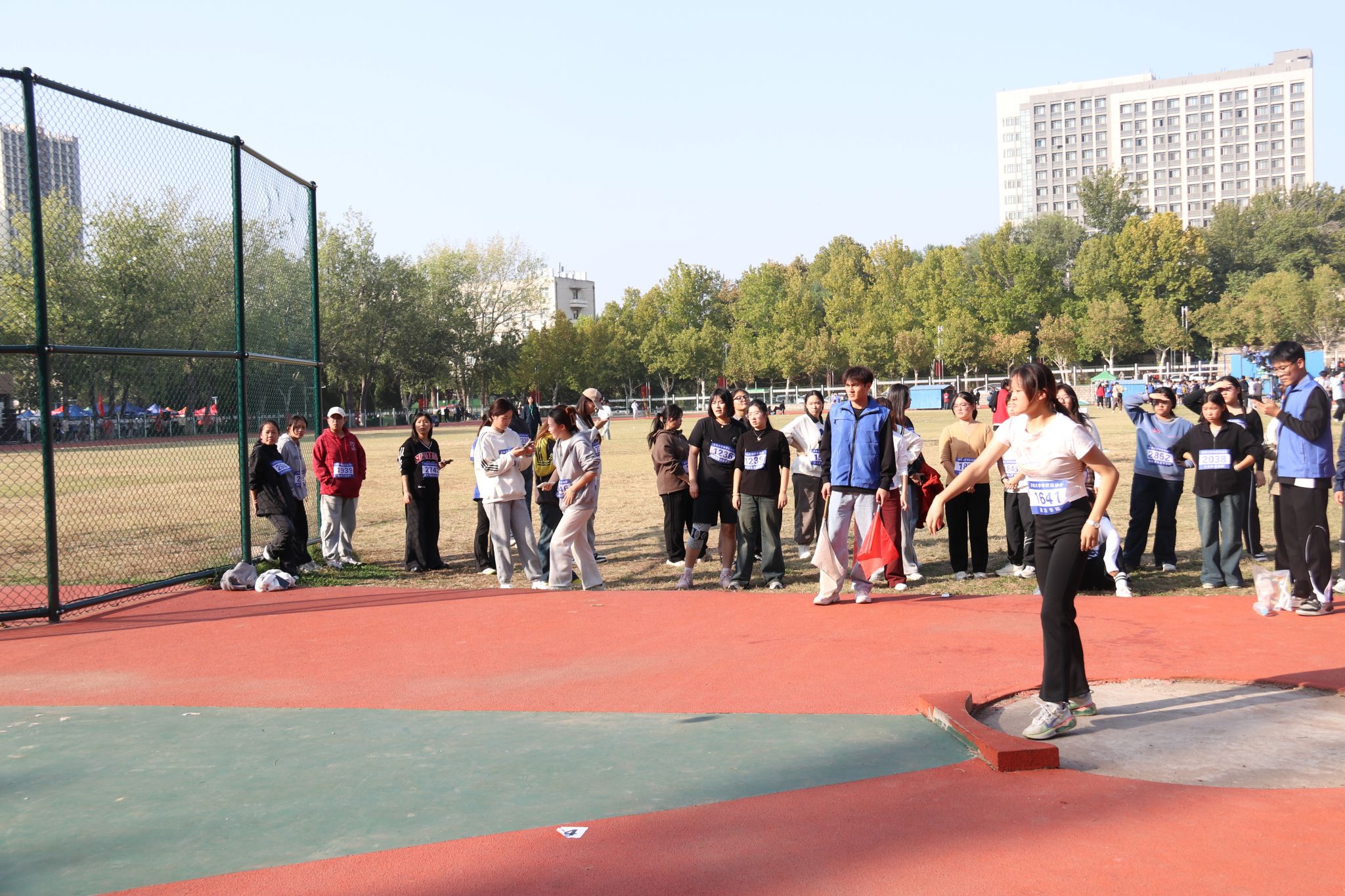 天气回暖,体感微凉。选手们陆续候场压筋、扩胸、转体,很快调整好运动状态,嘴里吐出暖气,蓄势待发。陈一诺、朴冠宇、周妍三位同学陆续上场。手臂斜向上外张,铅球放在锁骨窝处,贴与颈部。降低重心,屈膝俯身,身体扭紧;手肘、脚腕、核心瞬间爆发式上推、扭转、收紧;身体因惯性前倾,眼神坚定追随着破空的方向,发丝随之旋甩。铅球落地滚动,完美的抛物线也昭示着六合论坛