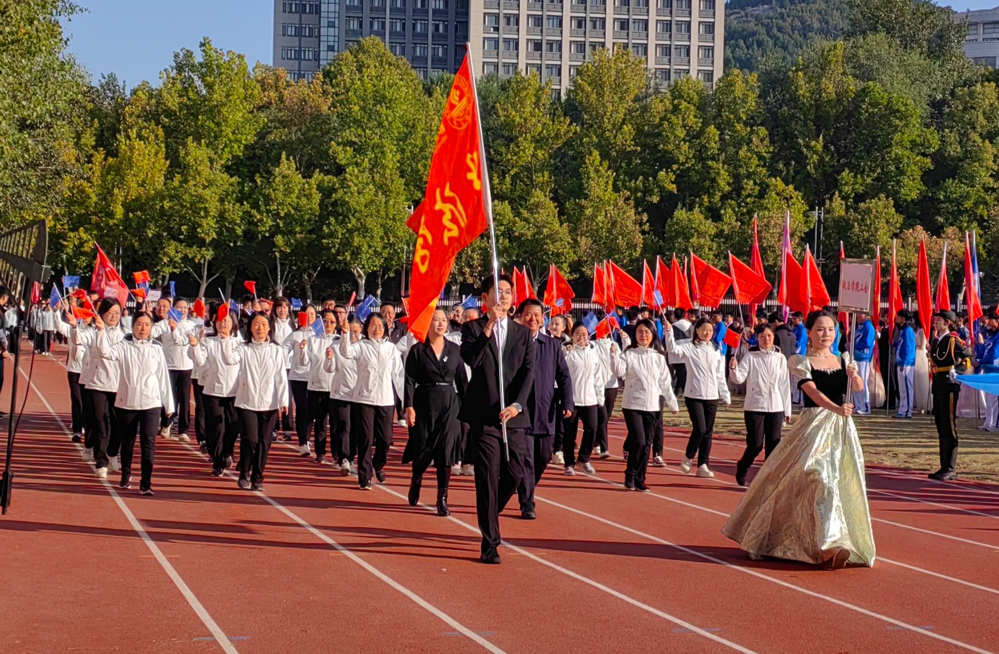 党委高度重视、各部门协同配合,学生志愿者们坚守岗位,全员积极操练、上下齐心,为运动会中运动健儿们的顺利参赛提供了保障。