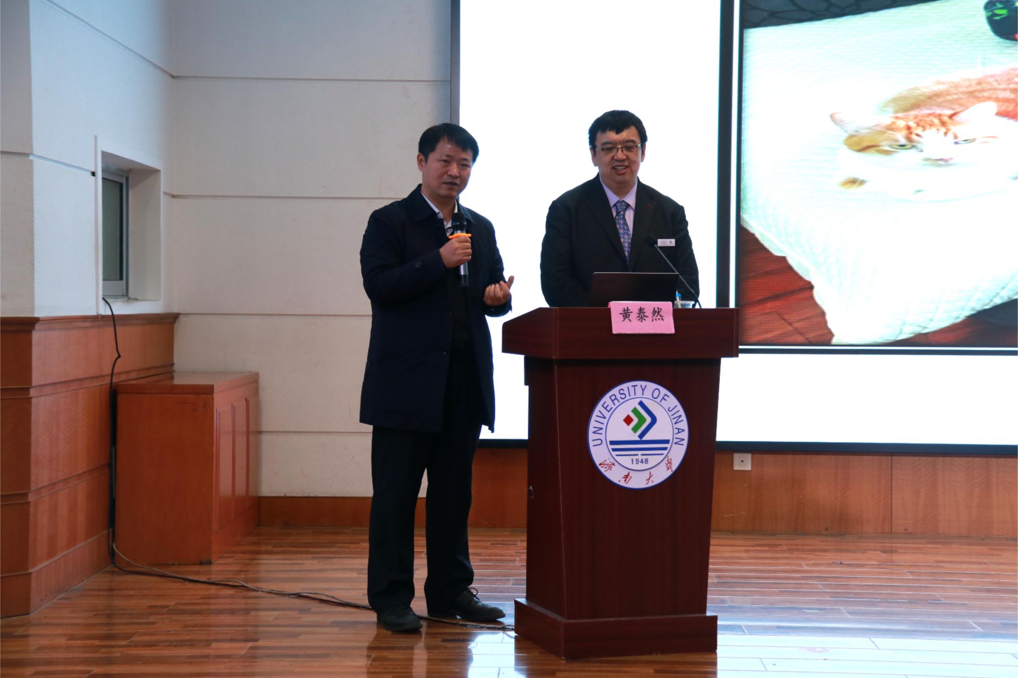 报告会分为两个环节,第一阶段为聘任仪式。高功敬教授为黄泰然博士颁发聘书,聘请黄泰然博士担任六合论坛