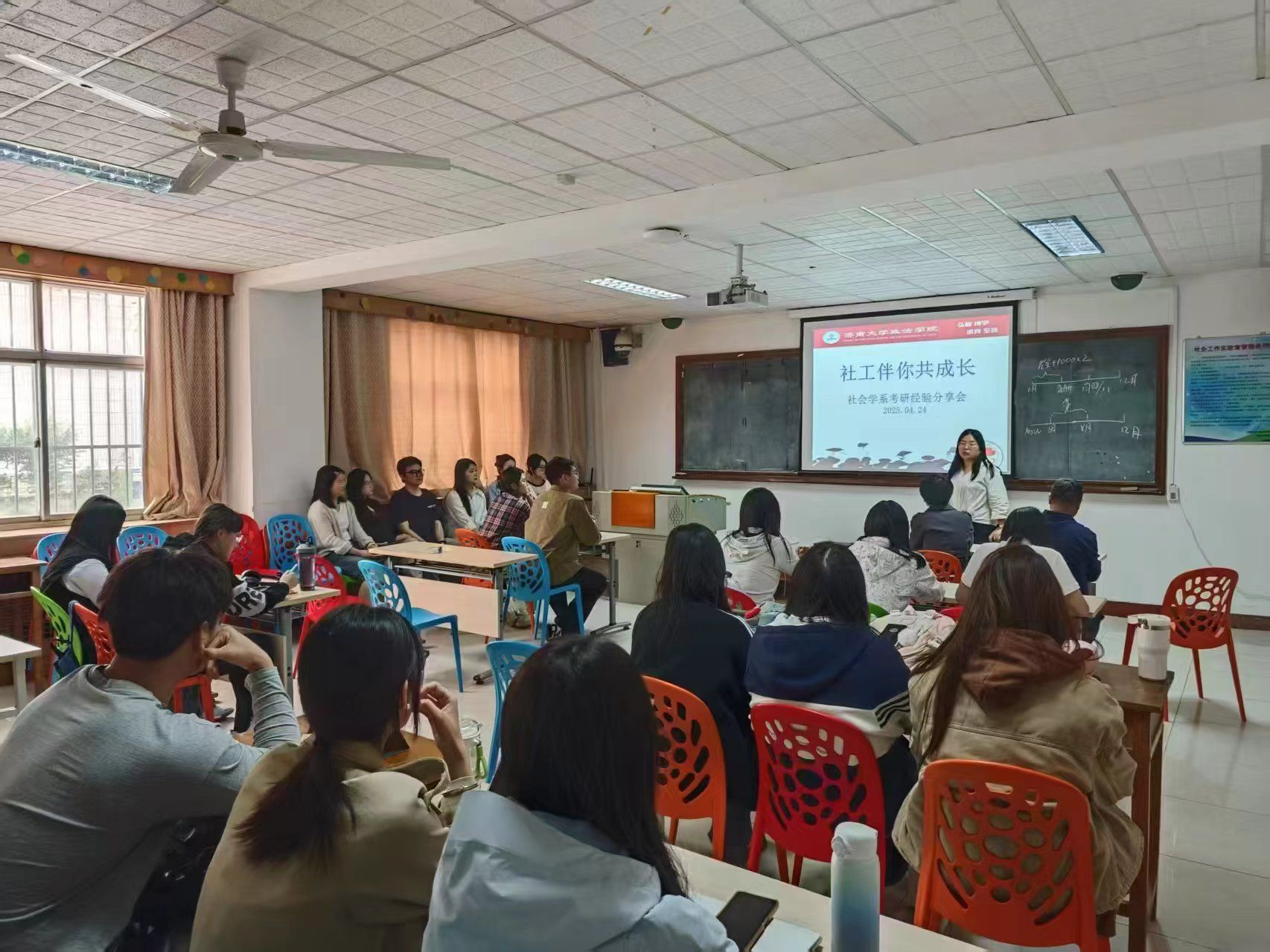 社会学系、系党支部在第四教学楼社会工作实验室举办2025年考研经验分享会。分享会由韩钰老师、邱莉老师主持,唐斌尧老师和社会学系21级、22级、24级近30名学生参加了本次活动。