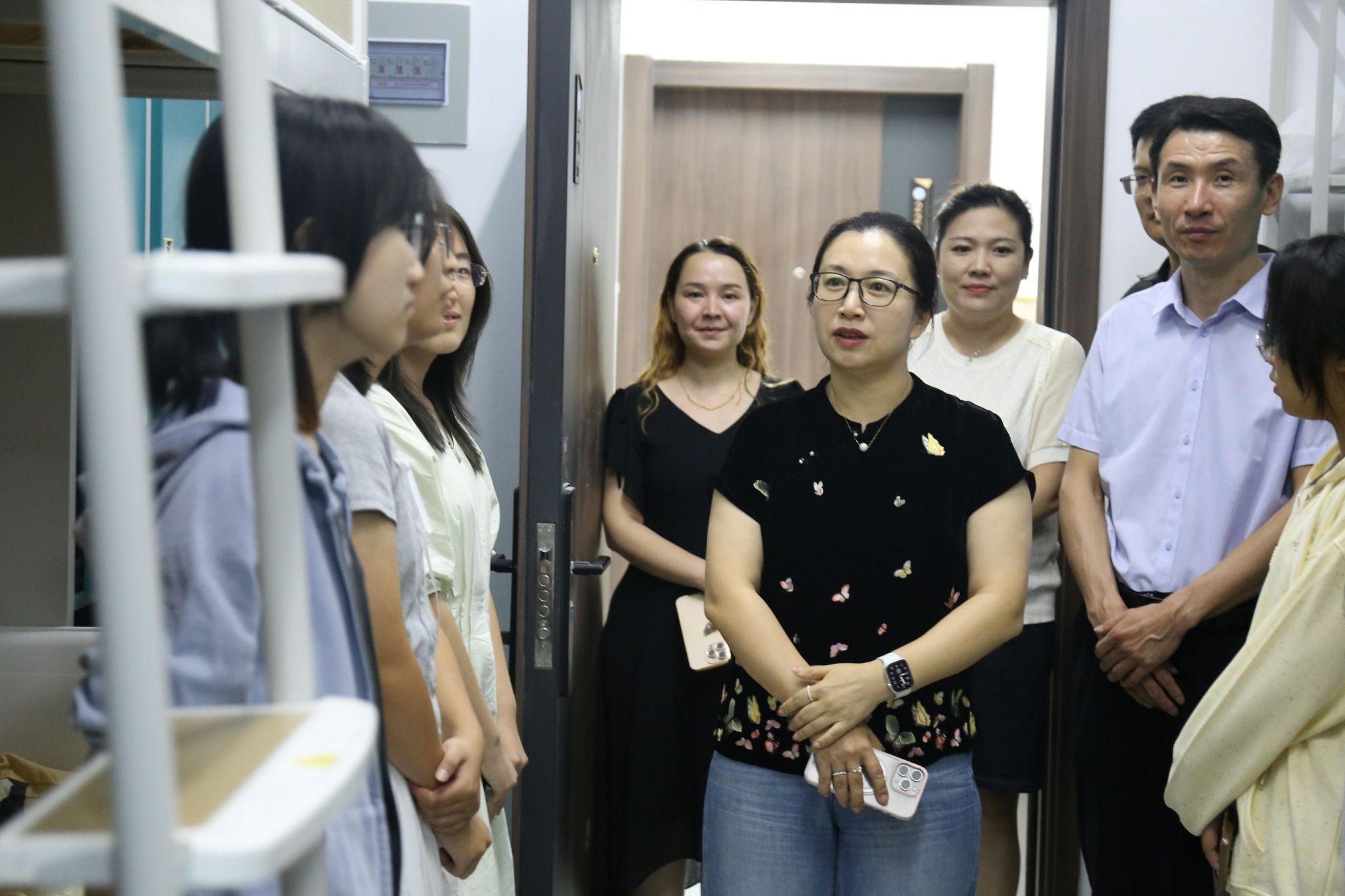 党委书记李春慧、党委副书记李涛与辅导员一行深入新生宿舍,与大家亲切交流,细致询问住宿、饮食等情况,倾听入学感受,并围绕课程学习、社团活动与校园服务等问题一一耐心解答。走访中,老师们还介绍了六合论坛