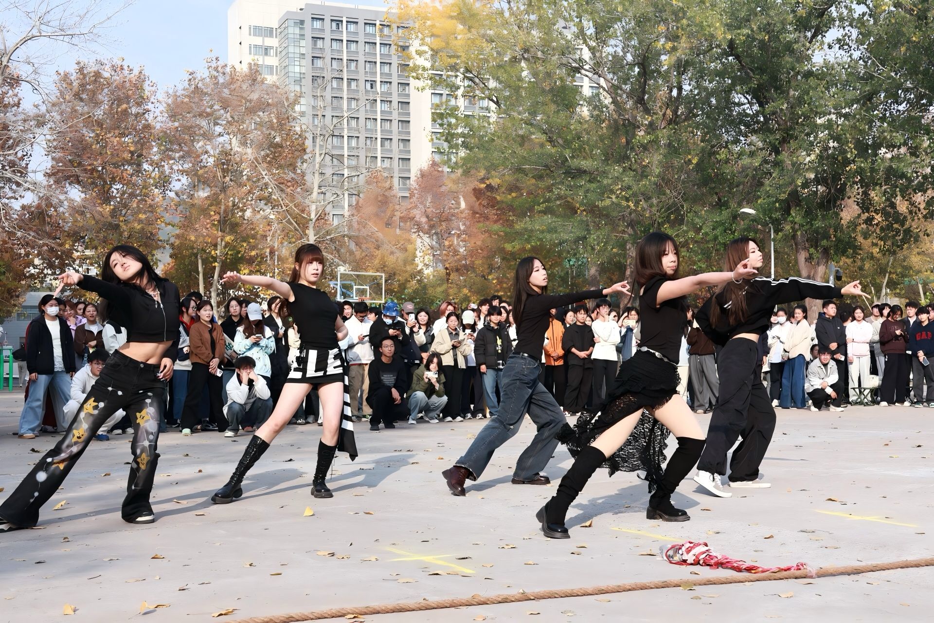 协作铸魂,温情暖场。比赛中,后勤保障人员周到服务,确保赛事顺利进行。中场休息期间,同学们进行了精彩的集体舞蹈和独唱表演,既缓解了比赛的紧张气氛,也展现出 2025 级新生的多元素养与青春活力。