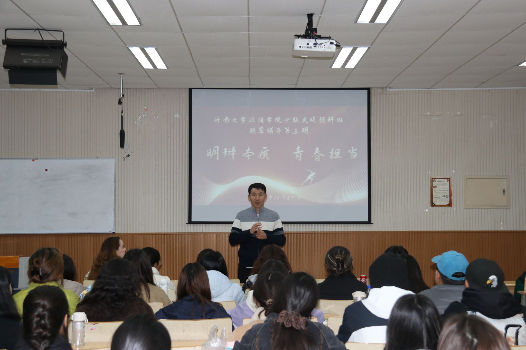王建国主任还特别提醒同学们,要牢固树立正确的国家观、民族观、宗教观、历史观和文化观,自觉抵制各类极端思想与不良信息。在网络交流与社会实践中保持理性思考,提升信息鉴别能力,不被虚假言论误导,坚决不参与任何危害国家安全与民族团结的活动。“新时代大学生是民族复兴征程上的生力军,既要锤炼过硬的专业本领,也要筑牢思想防线,以切实行动守护校园安宁与社会稳定。”他恳切而有力的话语,引发了在场同学的强烈共鸣。同学们纷纷表示,今后将积极参与民族团结活动,尊重各民族风俗习惯,与各族同学互帮互助,以实际行动践行“各民族一家亲”的和谐理念,努力成长为堪当民族复兴大任的时代青年。