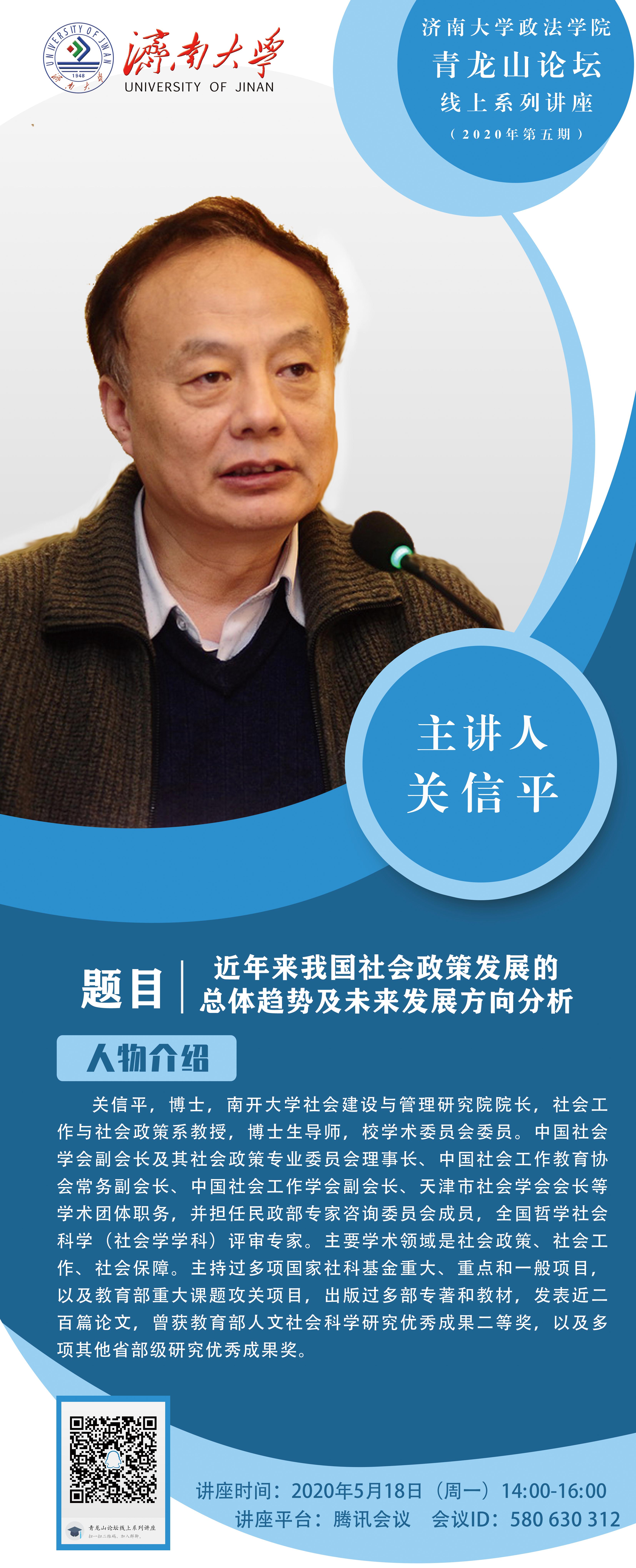 青龙山论坛——线上系列论坛(2020年第五期)近年来我国社会政策发展的总体趋势及未来发展方向分析