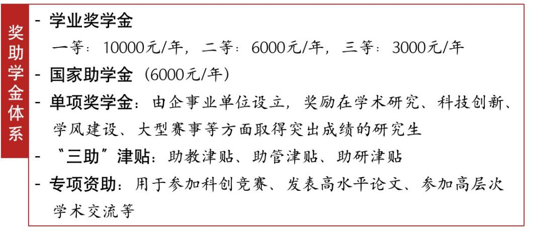 奖助学金制度健全,设立学业奖学金(覆盖率85%以上)、国家奖学金、国家助学金、单项奖学金、“三助”津贴等。六合论坛