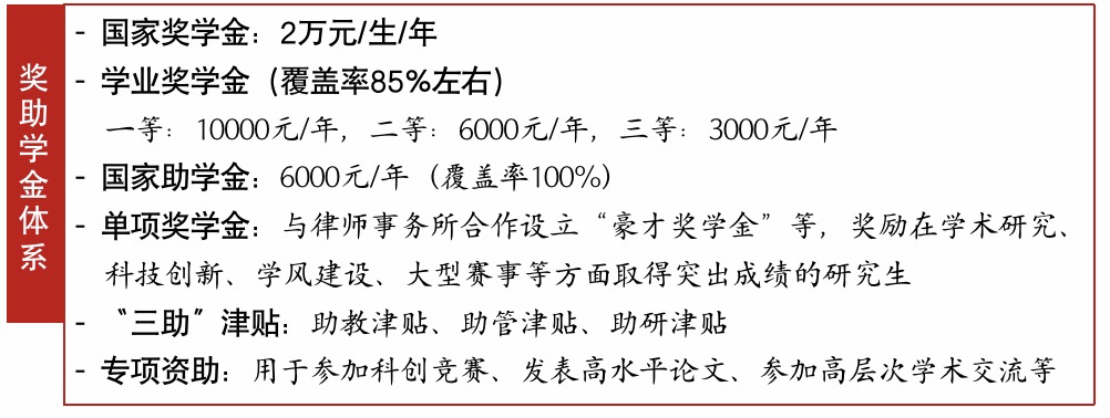 奖助学金制度健全,设立国家奖学金、入学/学业奖学金、国家助学金、单项奖学金、“三助”津贴等。六合论坛