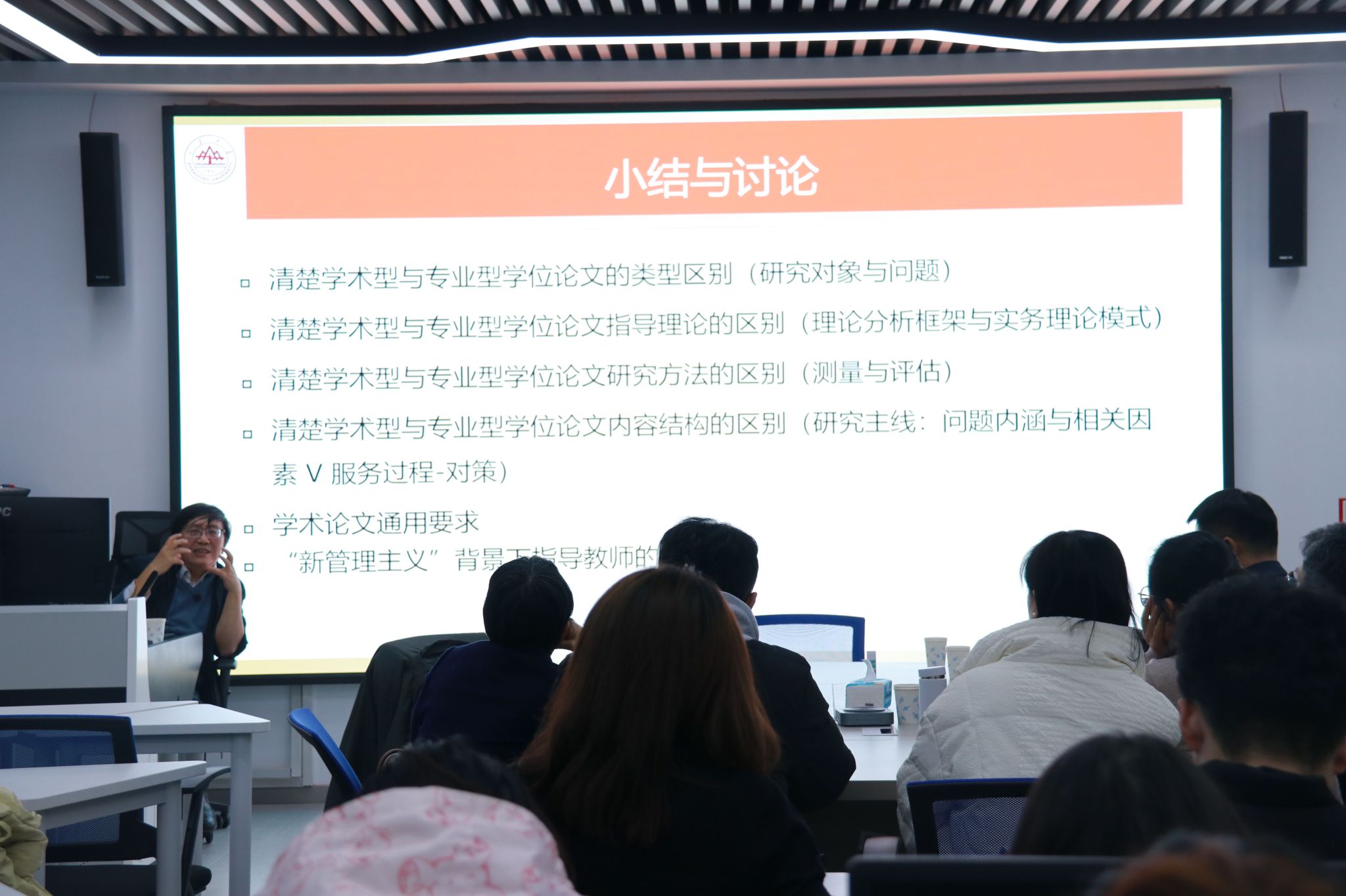 讲座结束后,高功敬院长作了总结发言。他首先向高鉴国教授表达了诚挚的谢意,为社工师生全景式呈现了一场专业而系统的MSW论文指导,高鉴国教授的讲解不仅理论功底深厚,而且紧密联系实际,对于明确学术型与专业型学位论文的区别、MSW专业学位论文选题和撰写,提供了非常宝贵的经验和启示。