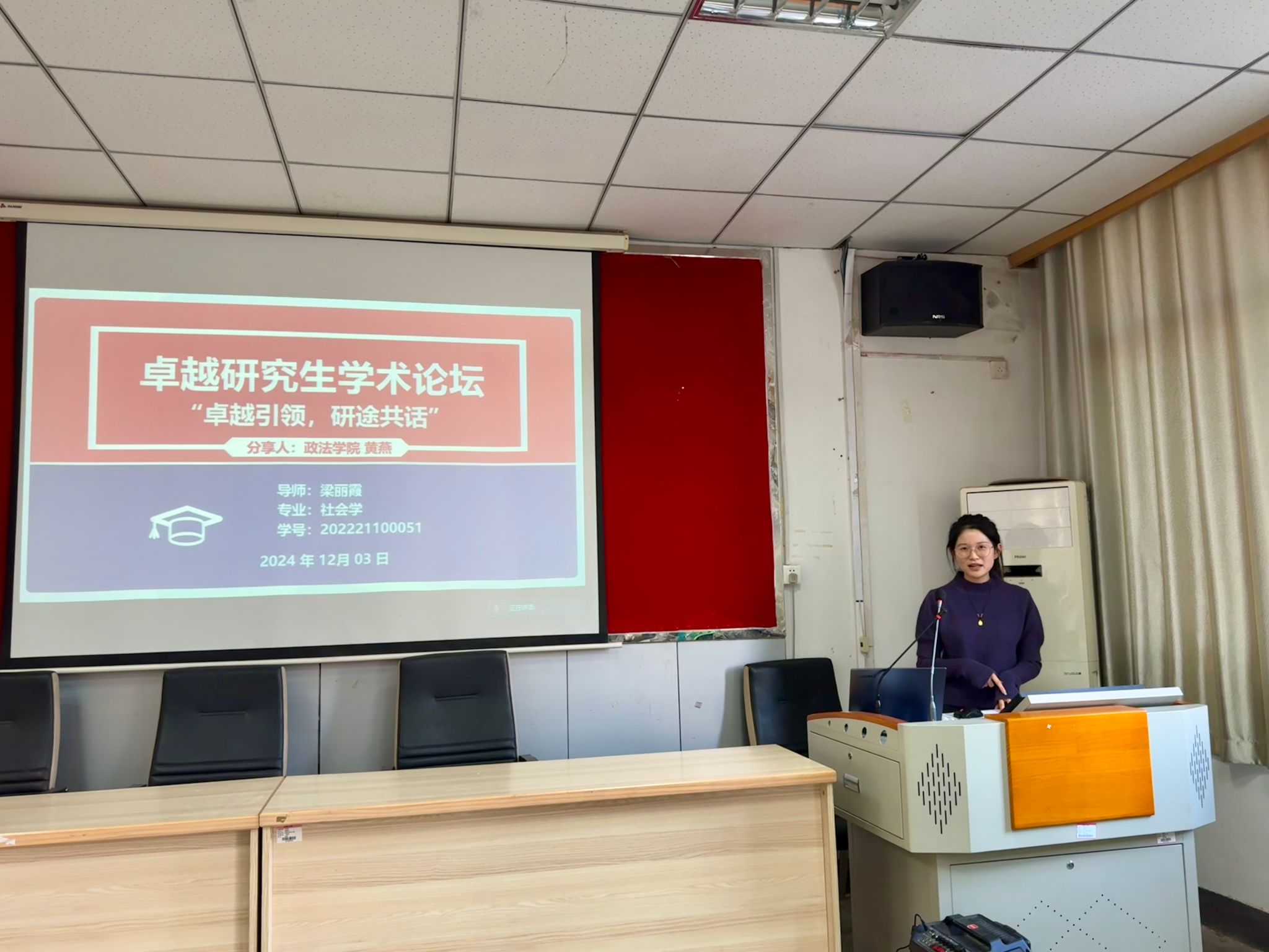 本次论坛邀请到国家奖学金获奖代表社会学专业黄燕,法硕专业任怡两位同学作为报告主讲人分享学习及科研经历。在报告中,两位同学分别结合自己的研究成果进行经验分享,强调了学术研究中选题的重要性,建议同学们通过广泛阅读核心文献并结合导师方向来确定主题。并介绍了研究中所使用的检索、阅读工具以及学术平台,以及如何利用这些工具来提高科研效率。两位同学分享了自己在研究方法上的选择,并建议根据兴趣和背景选择合适的研究方法。鼓励大家勇于尝试和不断改进自己的研究,积极投稿和参与学术交流。
