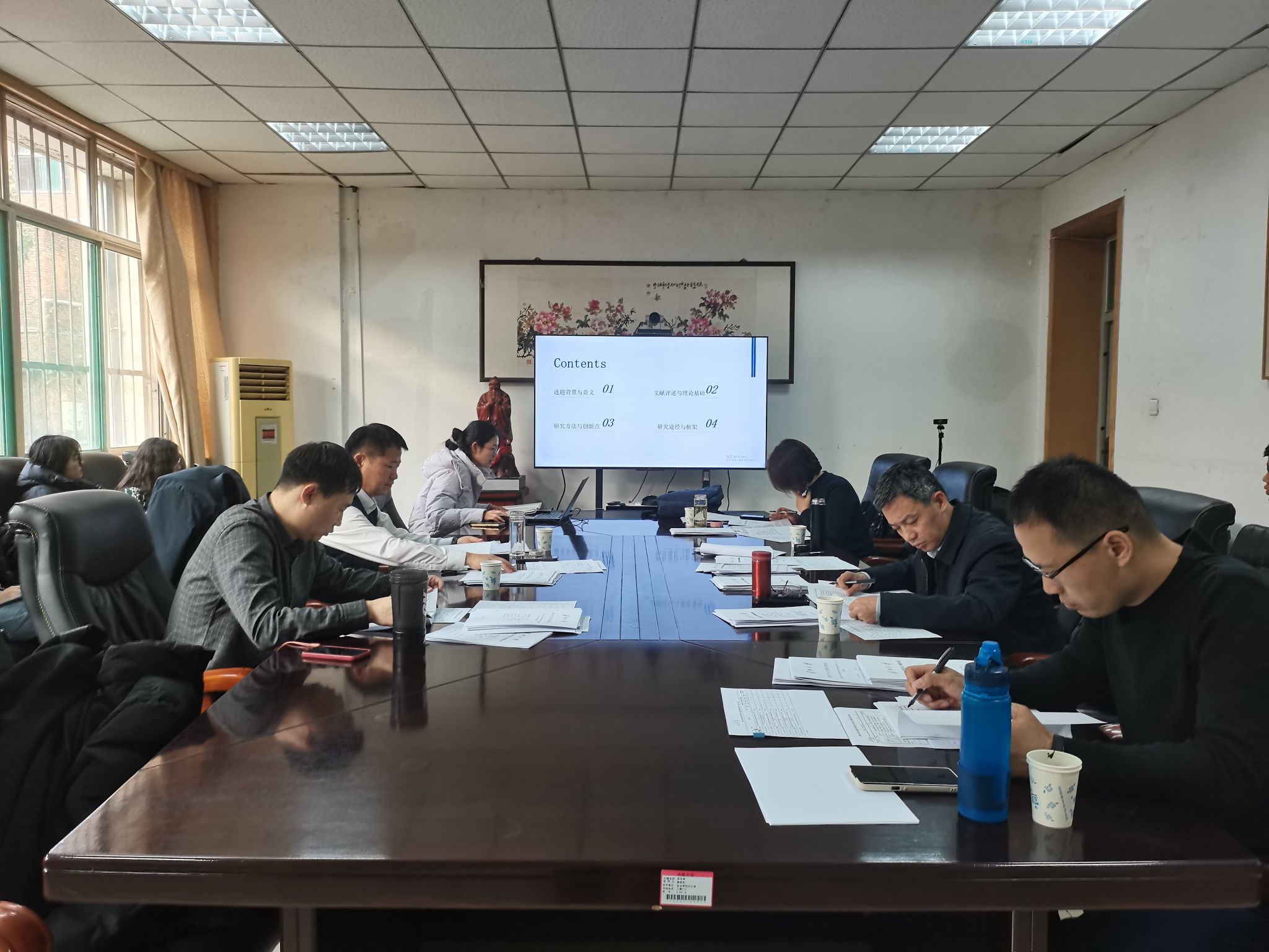 每位同学从学位论文选题背景和意义、理论基础、研究方法、研究思路和写作框架等方面进行陈述。考核组专家从选题、研究方法、写作规范等方面提出建设性修改意见,并就开题报告、中期检查报告等相关材料中存在的问题和不足提出意见建议。