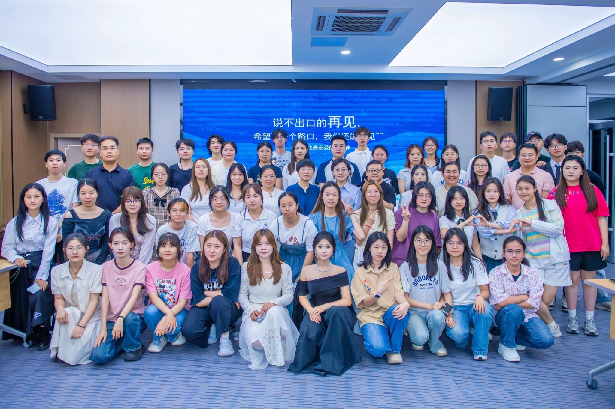 本次活动由社工24级同学策划和主持,24级和23级的同学们表演了精心准备的节目:洋溢着青春活力的开场舞蹈点燃了大家的热情;动人的歌声悠扬缠绵,勾起了众人的记忆;幽默生动的小品令人开怀大笑,更是将现场欢乐的氛围推向高潮。随着一首吉他曲《再见》的响起,以及24级同学专门为毕业同学们制作的祝福视频放映在荧幕,本次座谈会也进入尾声。