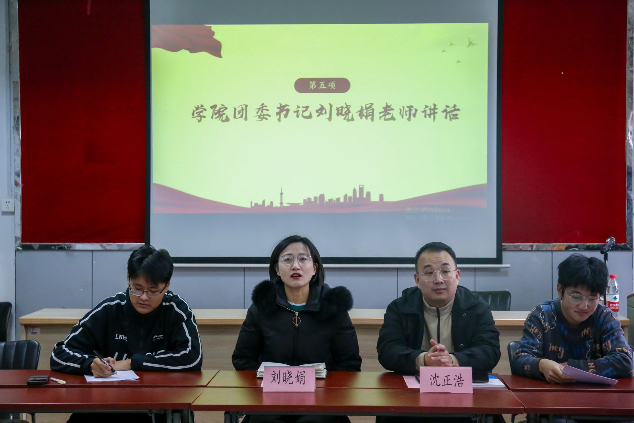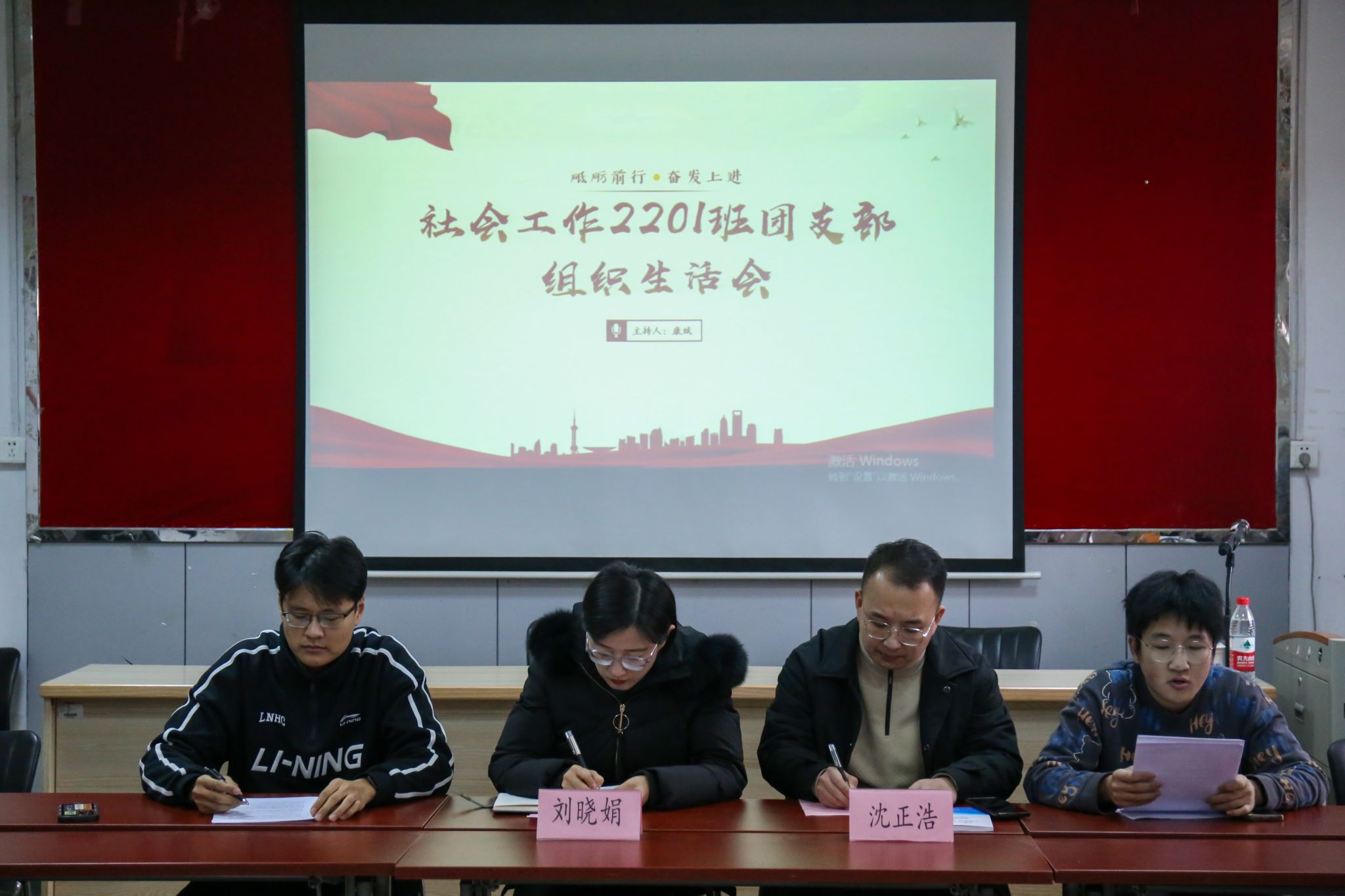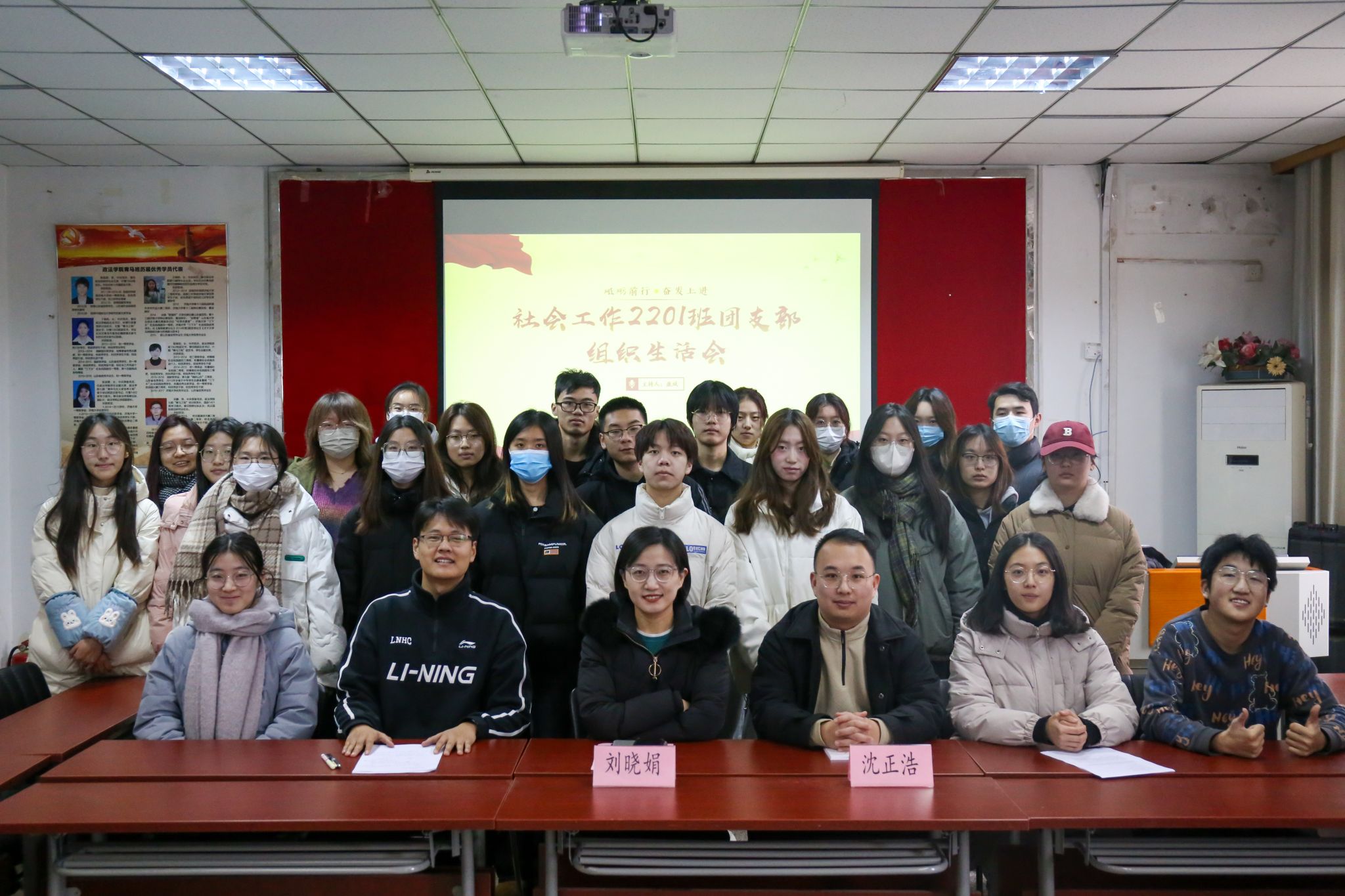 团委书记、2022级辅导员刘晓娟老师,2022级辅导员沈正浩老师,社工2201班团支部全体成员参加会议。会议由团支部副书记康斌同学主持。