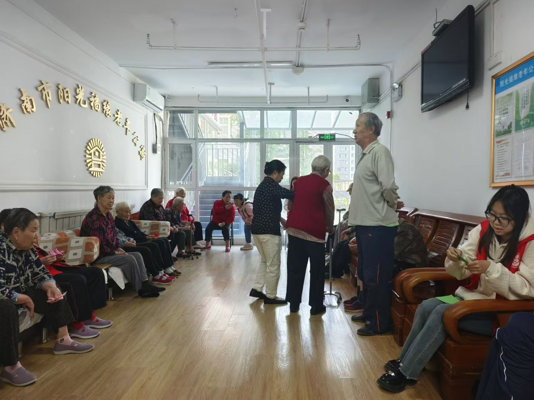 活动当天,志愿者们在抵达老年公寓后,首先和公寓负责人进行了交流,简单了解了老人们的基本情况。随后,在公寓大厅里,志愿者们逐一向老人们作自我介绍,并与他们亲切交谈,用真诚的笑容和温暖的话语迅速拉近了彼此间的距离。为进一步锻炼老人们的肢体协调能力,志愿者们又带领老人们进行了手工折纸和“五官游戏”等活动,现场的氛围温馨而又和谐。活动的最后,老人们与志愿者们一起唱歌,将气氛推向高潮,优美的歌声环绕着整个大厅,活动也随着歌声的结束逐渐落下帷幕。本次志愿活动不仅让老人们感受到了社会的关爱与温暖,也增强了志愿者们对于孝亲敬老的理解,让他们深刻体会到了爱老助老的重要性。