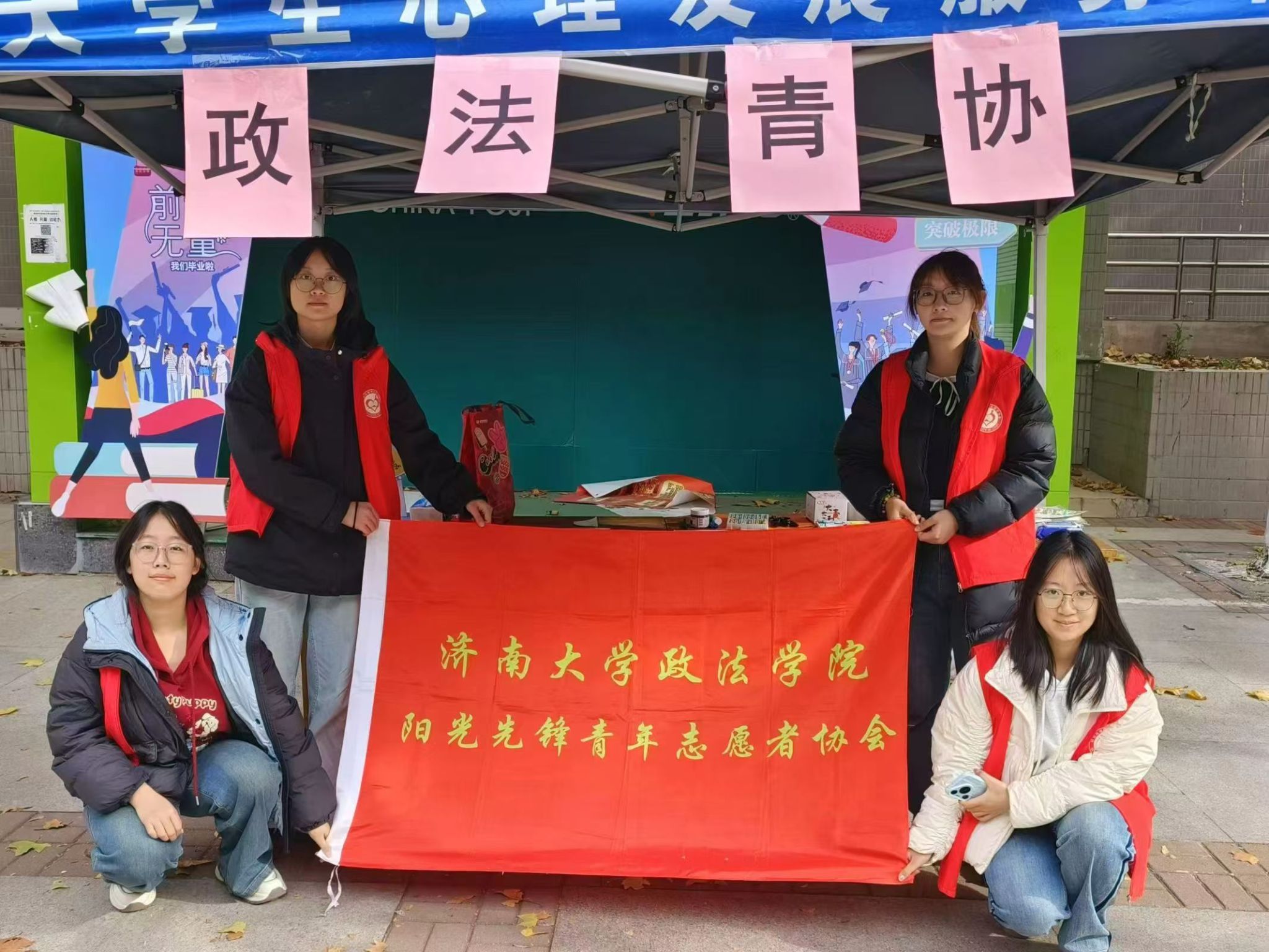 阳光先锋青年志愿者协会志愿者于八食堂广场东侧开展了一场以“青春火焰蓝,消防伴我行”为主题的消防月特别活动。