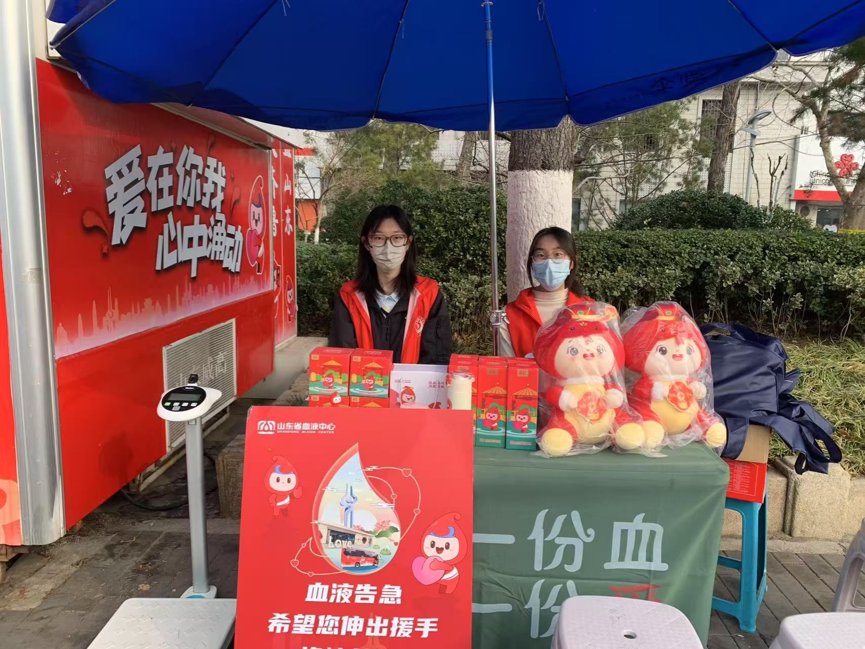 阳光先锋青年志愿者协会(以下简称“政法青协”)的志愿者们于山东省血液中心解放桥献血点进行志愿服务活动。