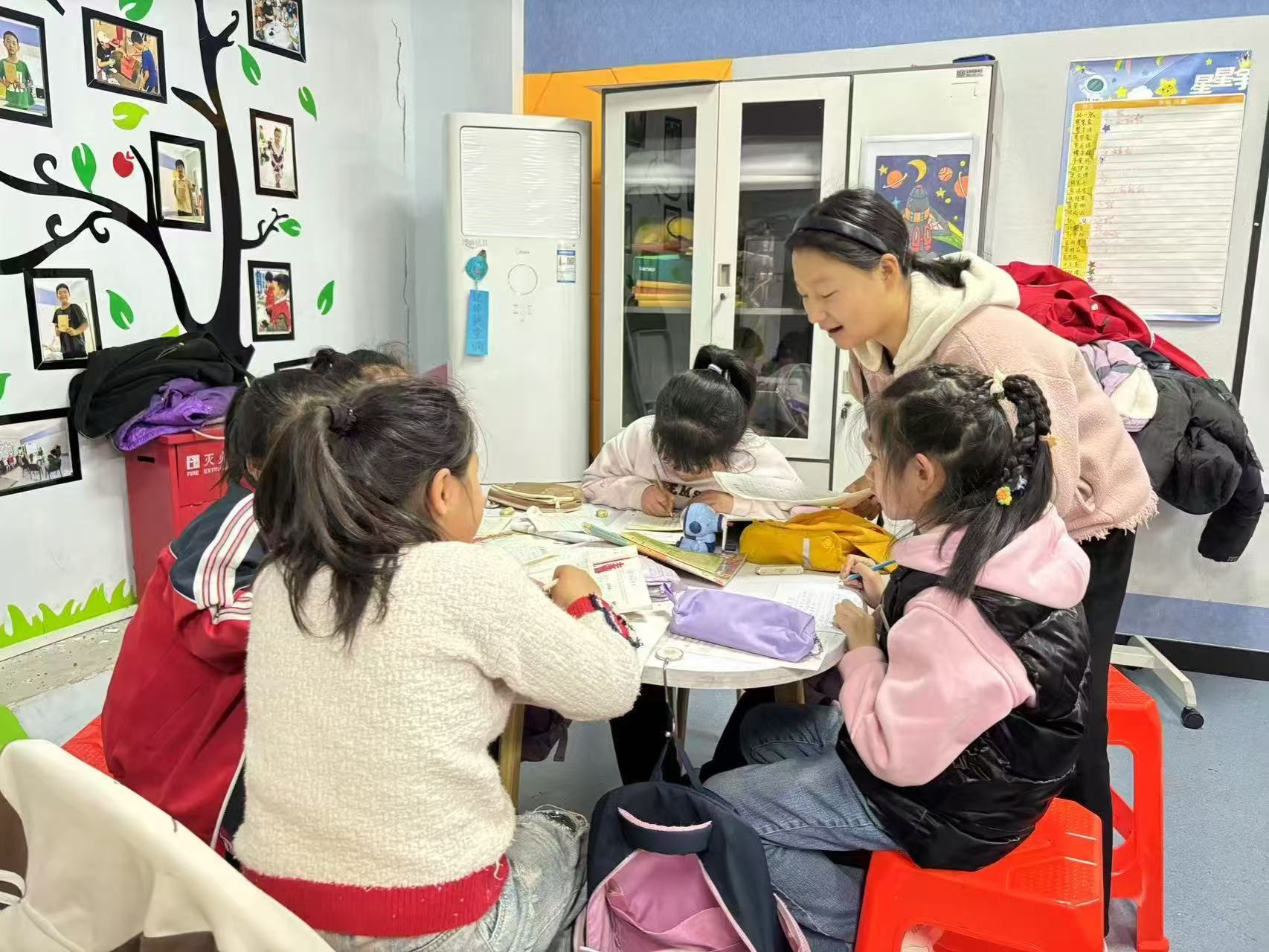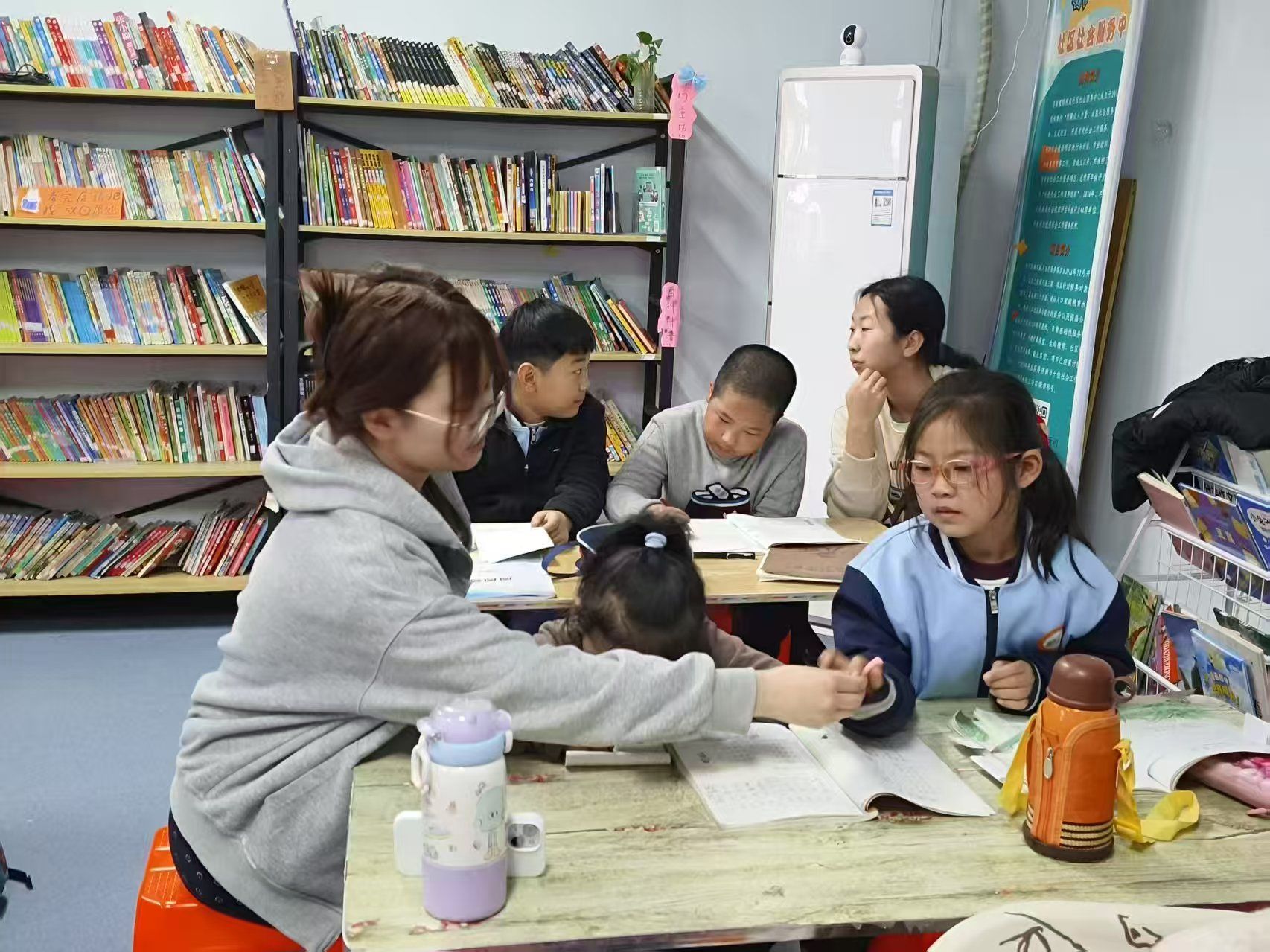 阳光先锋青年志愿者协会(以下简称“政法青协”)的志愿者们前往济南槐荫积成社区社会服务中心的活动室内开展“四点半课堂”活动,助力随迁儿童学业成长。