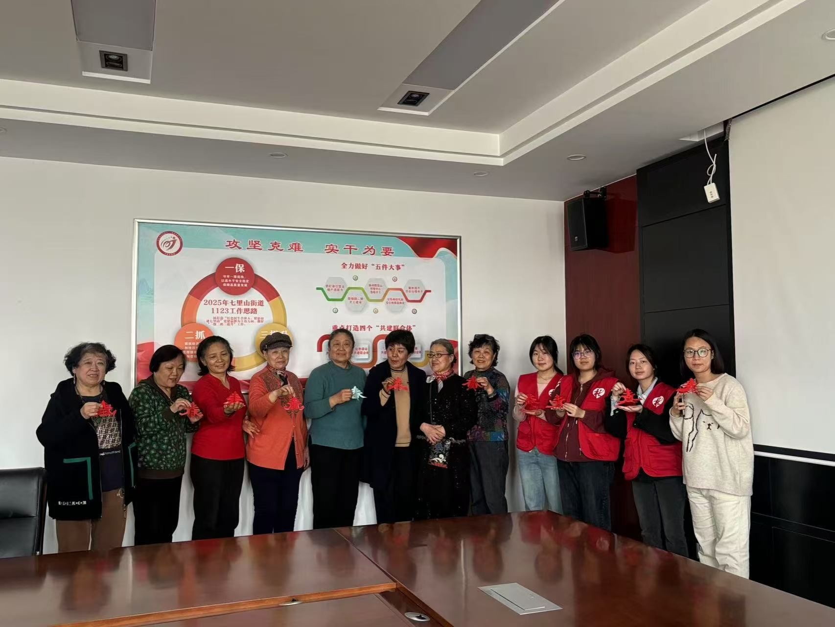 2024级社工学子协助市中区七里山街道社工站举办了一场“春意剪彩”社区倡导活动。