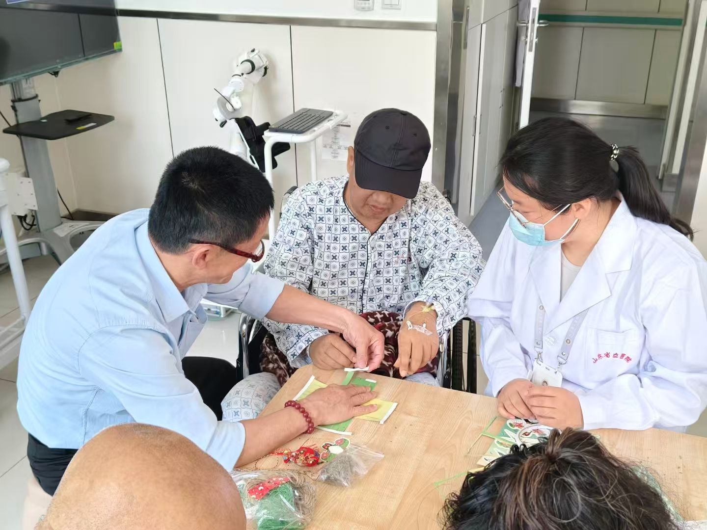 2022级社会工作专业实习生联合山东省立医院康复科,共同为住院患者策划了一场别开生面的“端午巧手寄安康”主题手工活动。活动将传统文化与康复治疗相融合,通过制作艾草香包、乌篷船,为患者营造了欢乐的节日氛围,传递人文关怀与康复希望。