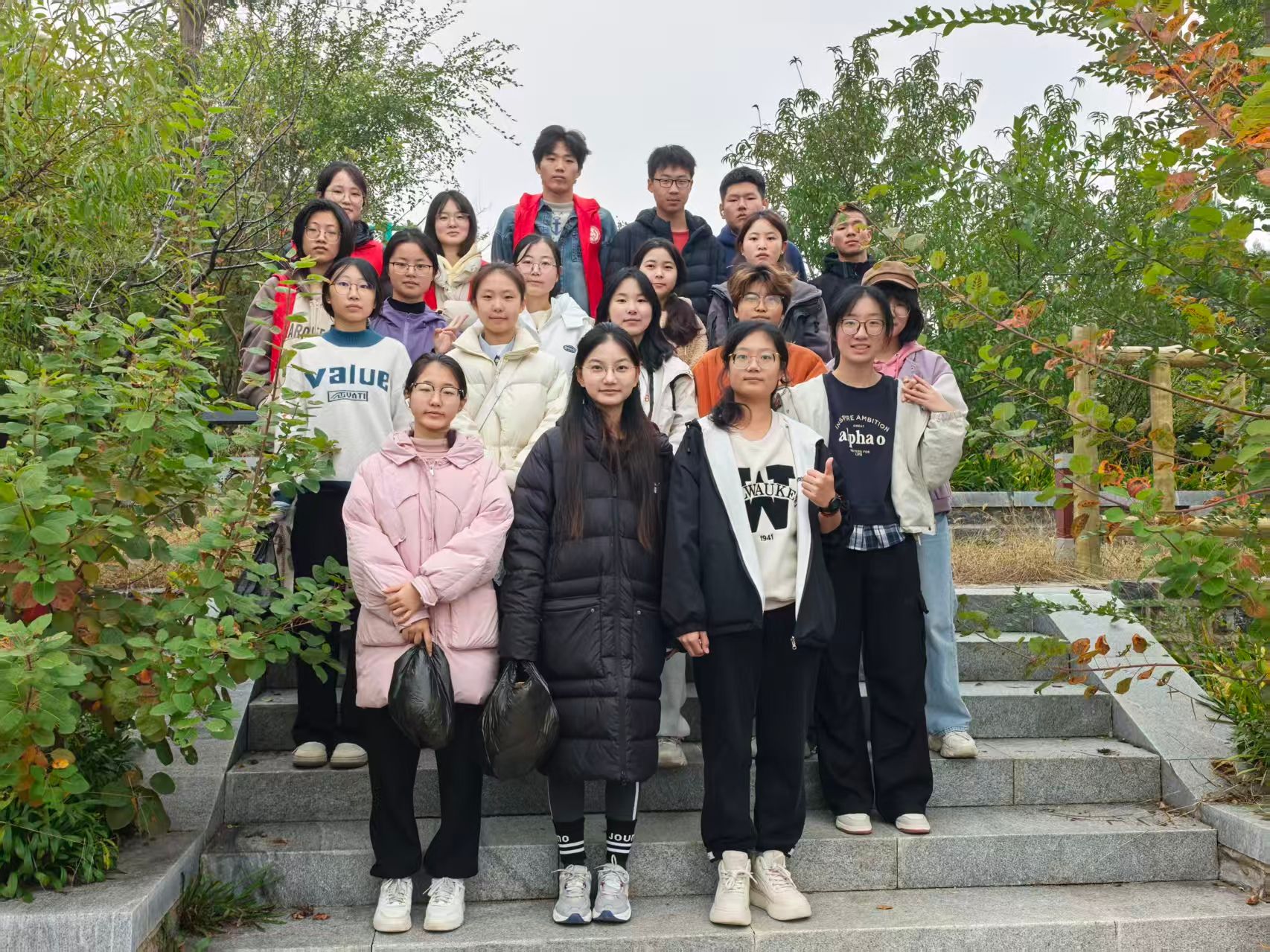 活动当天上午9时,志愿者们在九食堂门口集结,领取加厚垃圾袋与防护手套后,有序向马武寨山进发。行进途中,特色互动环节让志愿之路更具价值:“垃圾溯源小讨论”中,大家结合沿途发现的零食包装袋、破损塑料袋等垃圾,剖析人们随手丢弃的心理诱因与环境影响;“生态知识小分享”里,志愿者详解黄荆、酸枣树等本土植物生态作用,现场通过叶片纹路、果实形态演示物种辨别方法,让抽象的保护知识变得直观可感。登山过程中,志愿者们以10人为一组分区域攻坚,重点清理陡坡、灌木丛等此前未覆盖的难点区域——有的俯身趴在石阶上,用手指抠出缝隙里的塑料碎渣;有的踮脚拨开茂密枝桠,将隐藏在草丛中的废弃包装物逐一收纳。两小时的辛勤付出,让原本散落垃圾的山林角落恢复整洁,裸露的植被重新显露生机,为游客营造了更洁净的登山环境。