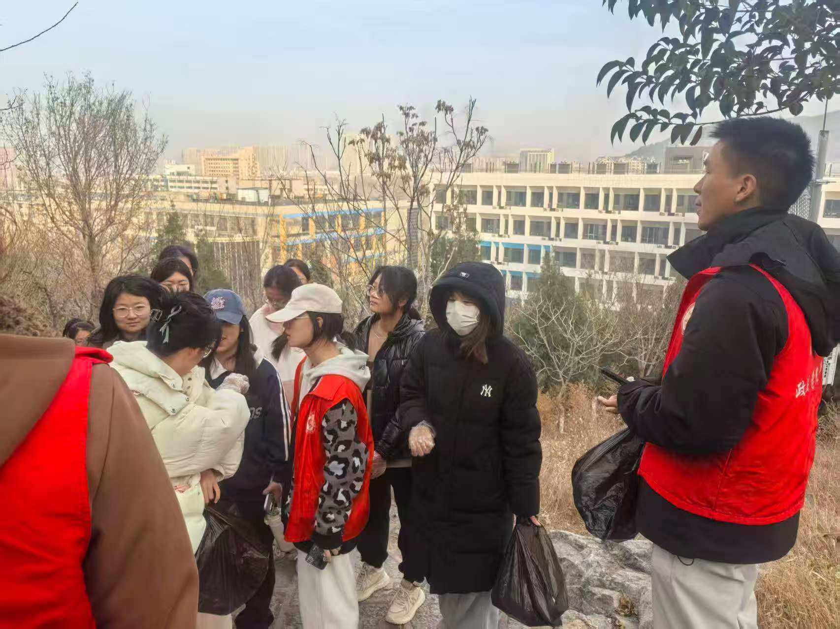 第九食堂门前有序集结,在工作人员的统筹安排下分组领取垃圾袋、防护手套等清洁工具后,一同奔赴马武寨山。行进途中,带队老师结合实地场景开展沉浸式教学:讲解垃圾分类标准与实操要点,引导志愿者们在后续劳动中学以致用;辨识山间白漆标识的生态意义与原生植被特征,鼓励大家做好物种记录、积累生态知识;途经微型消防站时,详细介绍消防设施的功能与维护常识,志愿者们随即拿起抹布,细致擦拭设施表面灰尘,以举手之劳筑牢山林安全防线。抵达核心清洁区域后,志愿者们分工协作、分片排查,对步道沿线、树林间隙、山石缝隙中的塑料垃圾、废弃杂物等进行全面清理,将各类垃圾按可回收、不可回收标准分类收纳。活动尾声,各小组上交的垃圾袋均沉甸甸满载成果,充分彰显了青年志愿者们务实担当的服务态度与饱满高涨的环保热情。
