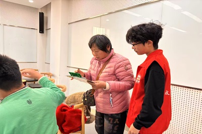 活动开始前,志愿者提前抵达现场完成筹备工作:将多面非洲鼓按半圆形规范排列,打造出兼具秩序感与互动性的活动空间,为后续活动铺好基础。活动过程中,在专业音乐指导老师的带领下,志愿者全程担任“陪伴者+协作者”双重角色:他们分坐于特殊儿童周边,以鼓点为纽带,引导孩子从基础节拍起步,协助调整动作、把控节奏力度;随着节奏变换,志愿者配合完成交替演奏,通过默契协作建立起与特殊儿童的信任联结。在这场鼓乐活动中,志愿者以鼓为介,打破特殊儿童情绪表达的阻滞,让特殊儿童在陪伴中收获参与感,为特殊儿童搭建了与外界温暖互动的桥梁。