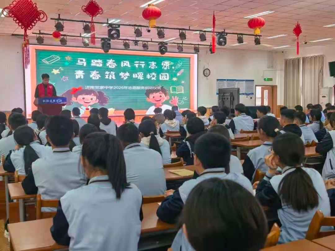 社工专业实习生与济南市市中区心家园社会服务中心携手,共同助力党东中学开展 “志愿服务团,党旗添光彩”文明志愿者启动仪式。仪式在党东中六合论坛