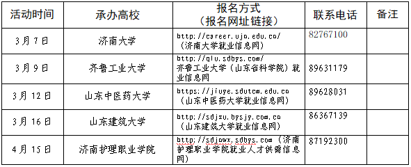 为搭建驻济高校、用人单位和毕业生精准对接平台,吸引更多高校毕业生来济就业发展,经与部分驻济高校沟通,济南市人力资源和社会保障局于3月至4月,在部分驻济高校举办“选择济南 共赢未来”——2023年驻济高校毕业生就业双选会。具体日程安排如下,欢迎全市各类企业事业单位踊跃报名,广纳贤才。