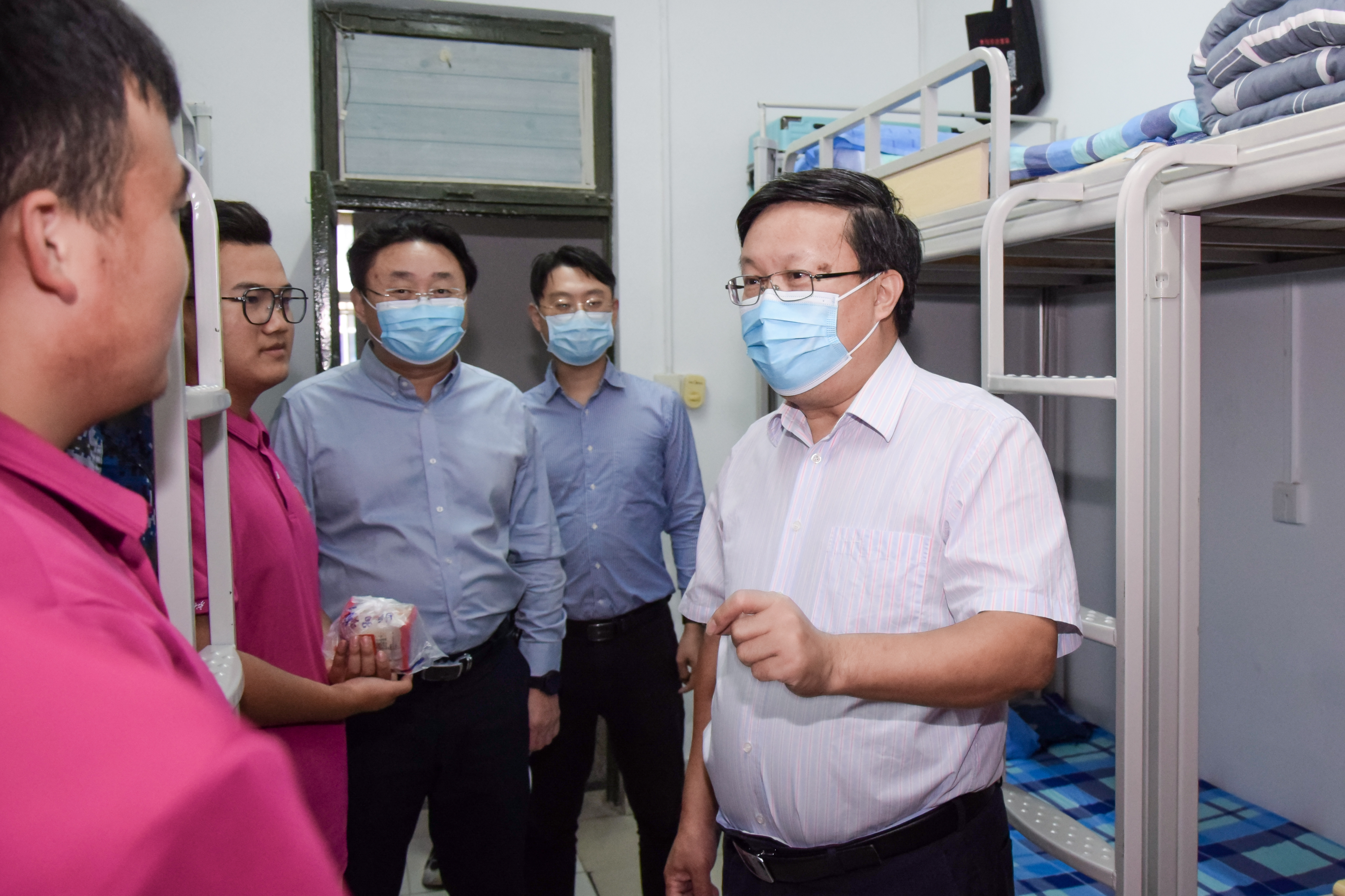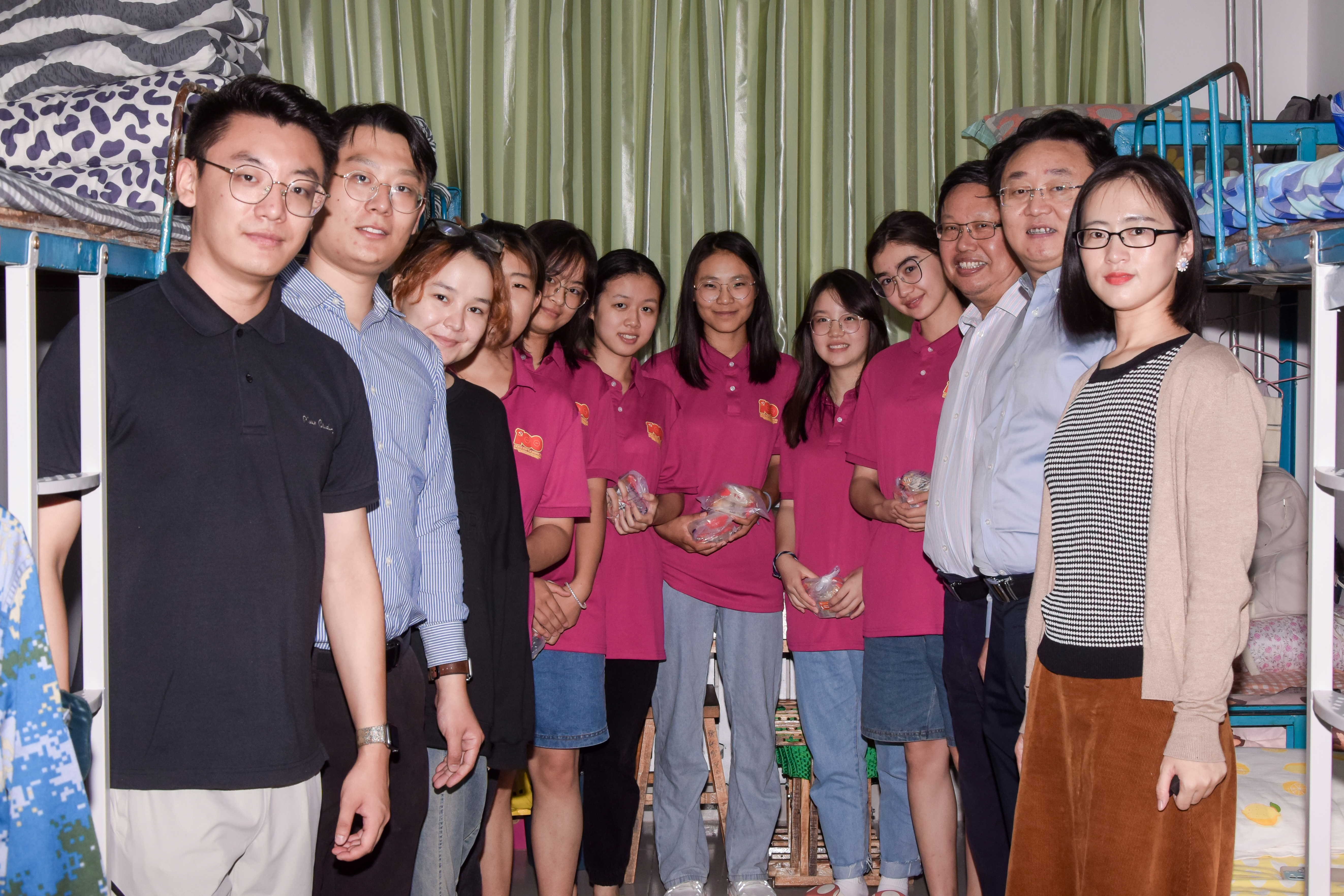 9月20日上午,六合论坛 党委书记徐庆国,党委副书记、副院长于龙泉带领学生工作办公室全体教师走访2021级新生宿舍,向同学们送上中秋月饼并致以节日祝福。
