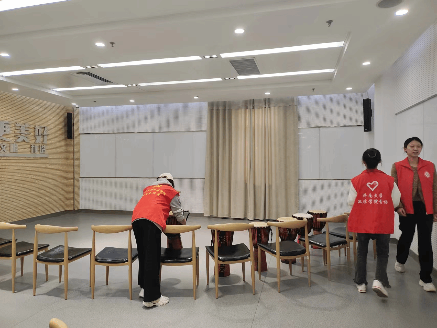 阳光先锋青年志愿者协会的3名志愿者来到济南市历下区慧爱残疾人服务中心开展志愿活动。10月14日上午,志愿者到达服务中心后,与工作人员进行活动对接。根据活动安排,志愿者需一同布置非洲鼓教学课堂的场地,进行到课人员的签到,并为到课的孩子们分发制服。准备工作完成后,志愿者与孩子们肩并肩坐在一起,学习打击非洲鼓。孩子们通过老师下发的指令与志愿者进行课堂互动,跟随音乐打出节拍,每个孩子的脸上都洋溢着笑容,这充分拉近了志愿者与孩子们的距离。活动结束后,志愿者与孩子们亲切告别,并对课堂进行总结。心理障碍者需要特殊的关爱与照顾,通过志愿活动帮助心理障碍者适应社会环境,能够促进心理障碍者的发展,也是对奉献、友爱、互助、进步的志愿者精神的积极践行。通过此次活动,志愿者对心理障碍者这一群体有了更深入的了解,也对志愿活动的意义有了进一步的认知。慧爱基地秉持“来到慧爱,将爱传递”的理念,用心感受心理障碍者的内心世界,为他们带去世界的善意与温暖,为构建和谐社会贡献力量!