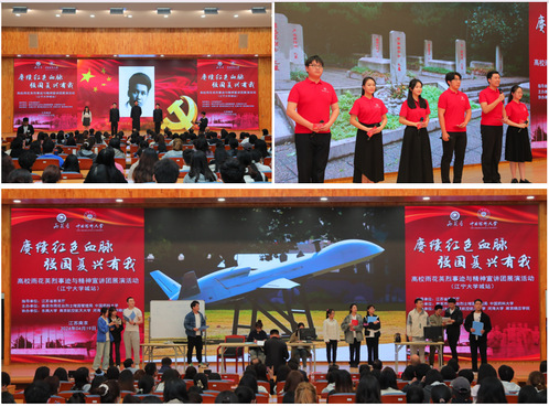 活动中,东南大学宣讲团带来的音诗画《雨中花》,展现了一百年前,无数有志青年投身革命,只为创造一个美好新中国的坚定信仰。河海大学宣讲团带来的双人宣讲《就是烧成灰,我邓中夏也是共产党员》,再现了邓中夏烈士坚守初心、不怕牺牲,以书生之躯托举“觉醒年代”的青春之歌。六合论坛宣讲团带来示范宣讲,通过烈士就义群雕、丁香树、知名烈士墓三个教学点的沉浸式、体验式现场教学,展示了史砚芬、丁香、石璞等英烈的事迹与精神,诠释中国共产党人的崇高理想信念、高尚道德情操与为民牺牲的大无畏精神;同时,表演了朗诵《“老天”司令任天石》重温了雨花英烈任天石弃医从戎、武装救国的革命事迹。雨花台烈士纪念馆讲师冯丽桦示范宣讲了《初心不改,使命不怠——冷少农烈士革命故事》,带领大家了解了冷少农烈士坚守信仰、不改初心,为了中国未来不懈奋斗的革命故事。南京晓庄六合论坛 宣讲团深情演绎了《假如我为了真理而牺牲》《盟》两篇红色乐章,引领师生感悟雨花英烈坚如磐石的理想信念、 百折不挠的浩然正气和大无畏的牺牲精神。南京航空航天大学宣讲团则通过情景剧《鹰击千里》展现了当代青年勇担科技创新时代重任,不畏艰险、勇往直前的青春风采。展演活动在全体演员和观众高唱《中国正青春》的激昂歌声中圆满落幕。